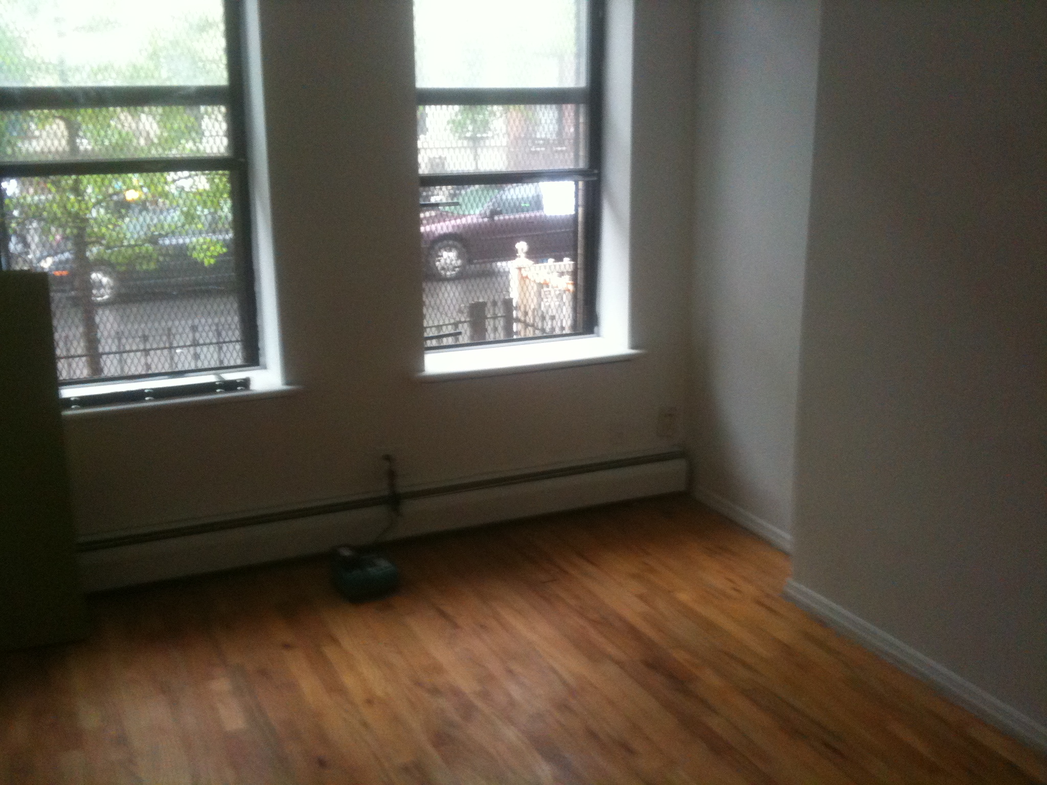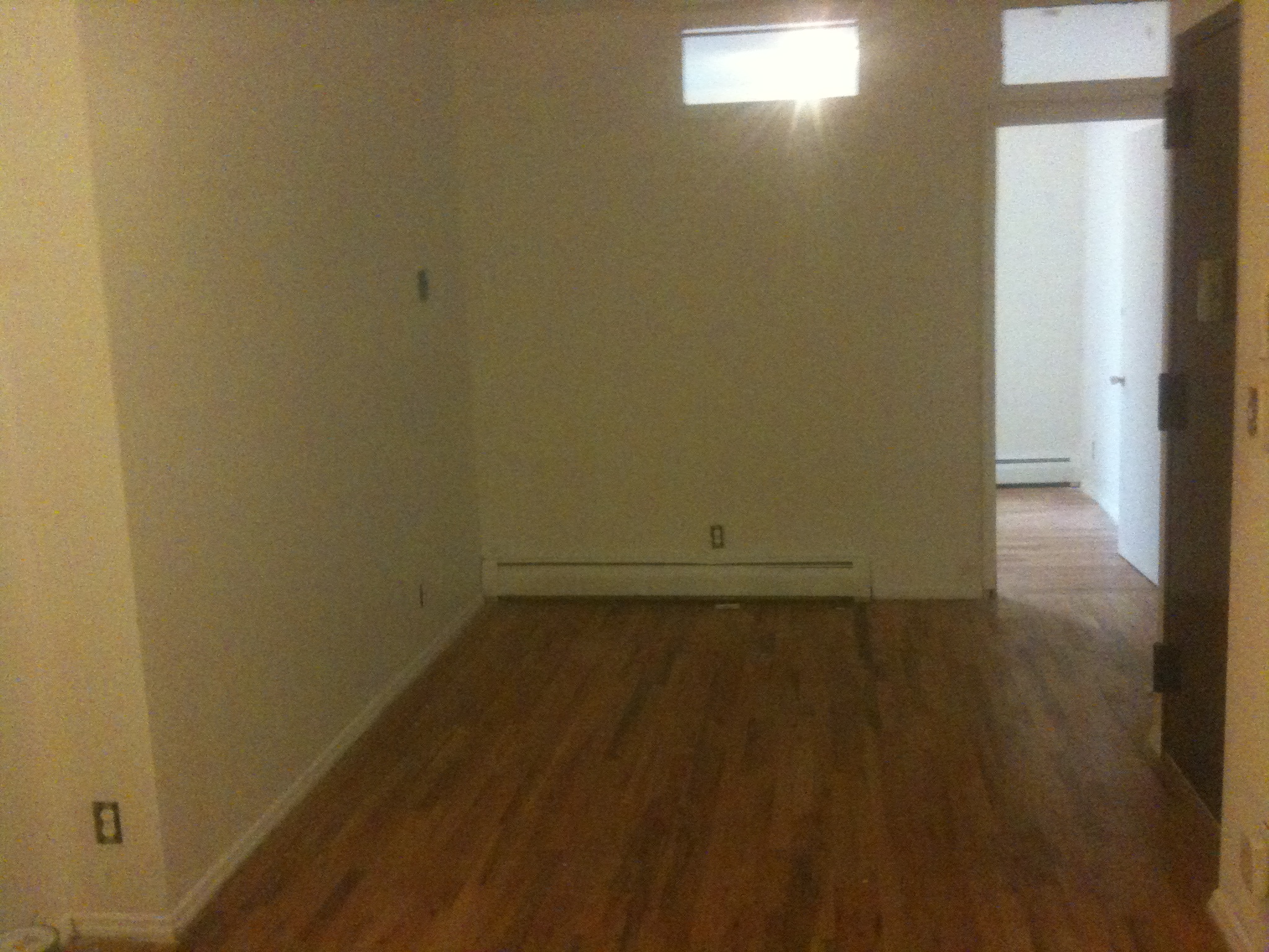 Our apartment is what’s referred to in New York, and most large old cities, as a “converted railroad.” For those of you non-New Yorkers, a railroad apartment is long and narrow, like a train car, with windows on either end. There are no interior windows because the building is sandwiched up against other buildings, so the only exterior walls face the front and back of the building. When most railroad apartments were built over a century ago they usually had two bedrooms at one end, with a living space in the interior, and the kitchens and bathrooms on the other end. They were built as tenement housing for low-income families, and the bedrooms were set up so that you had to walk through one to access the other. Today though, most of these apartments are rented to young people with roommates that don’t want to have to walk through one another’s bedrooms to access the rest of the apartment. Many have been renovated to move the bedrooms to either end, with the living space moving into the interior. Hence the term “converted railroad”. Our apartment was most likely converted in the mid 90s, based on the materials used for flooring and fixtures.