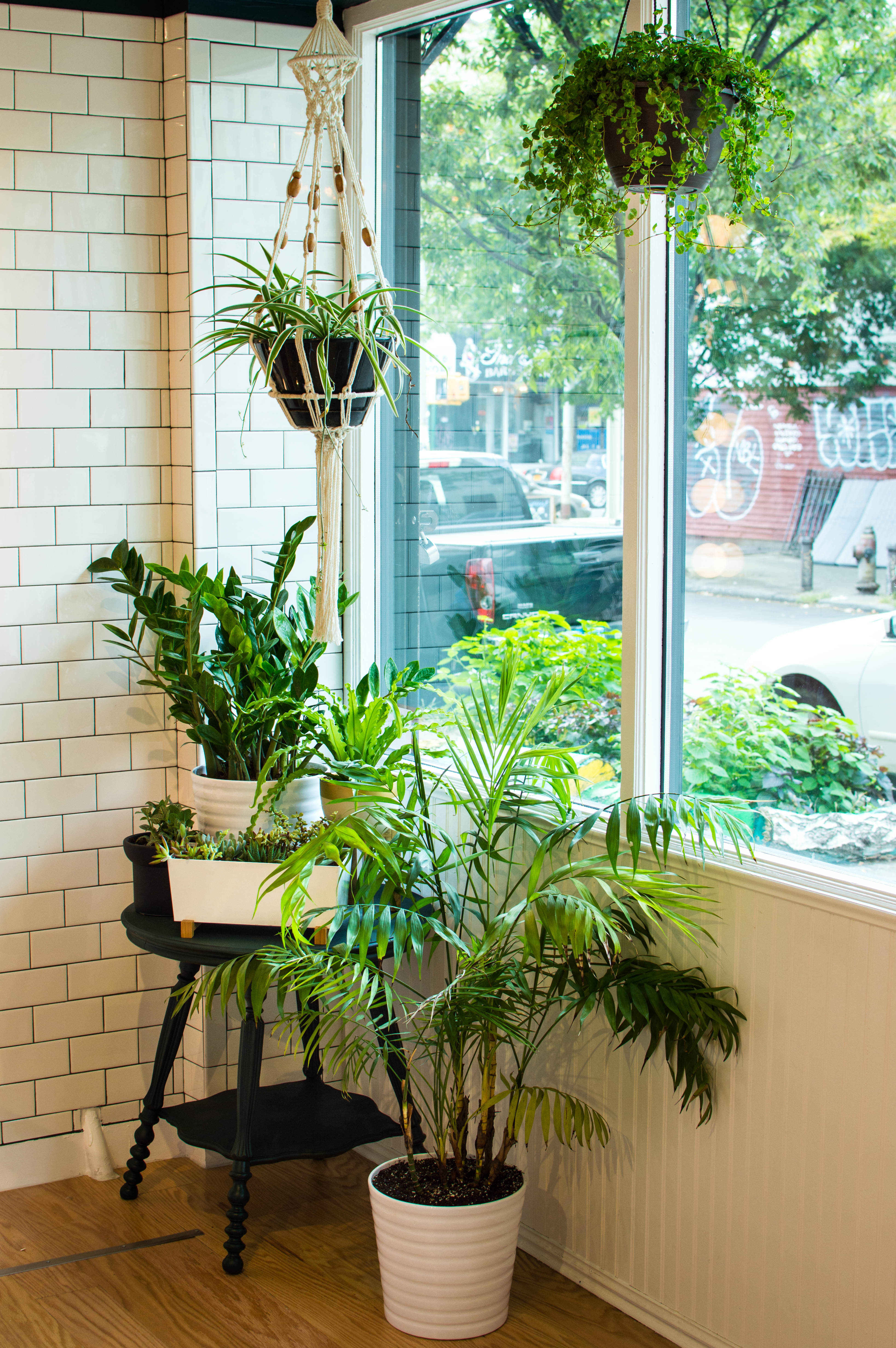 We’d always known that we wanted to bring in a couple of plants to add some life and color and texture to the room, but once we were about ready to open, it quickly became clear that we needed more than just a couple. The next thing we knew we were amassing a small jungle, and the bright greens and mix of tones and textures instantly brought a welcome warmth and vibrance to the space! We’ve actually added even more since these photos were taken, and I still have my eye out for more yet!