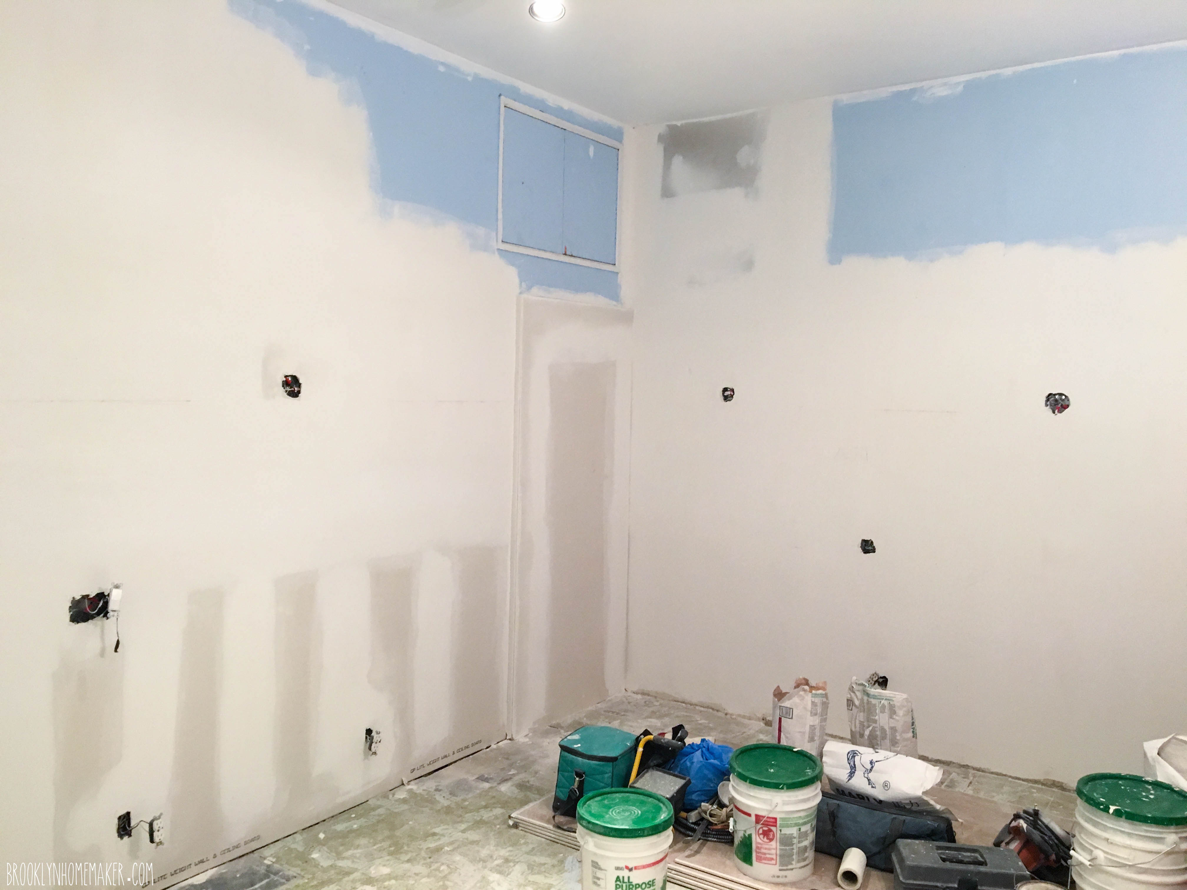I have to admit, we really lucked out with a contractor who worked quickly and efficiently, and things (mostly) went nice and smooth all through his work. The demo went well, new drywall went up, things were patched and beginning to take form. To help save a little money I would go in after the crew left to prime and paint the patched up walls and ceilings myself.