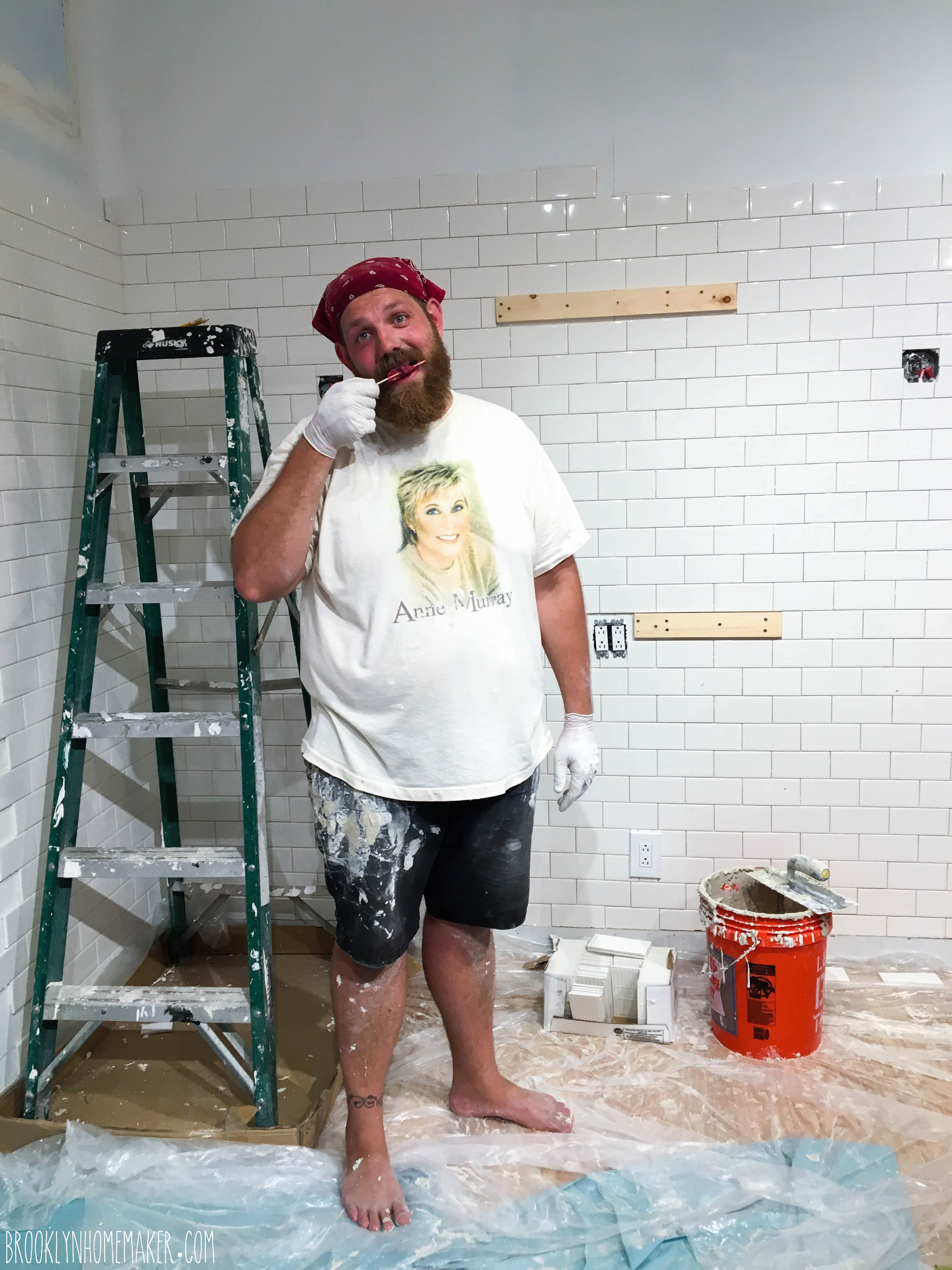 After hours and hours of wiping and scrubbing to get the dried grout off the walls, I literally laid on the floor and had an honest to goodness temper tantrum, right there in front of my poor mom. I was hot and sleep deprived and hungry and completely depleted and my arms felt like jelly and I was sure that the grout was going to set and permanently ruin our beautiful tile and all I could think about was how stupid I was and how we were going to have to rip out the ruined tile and re-do it.