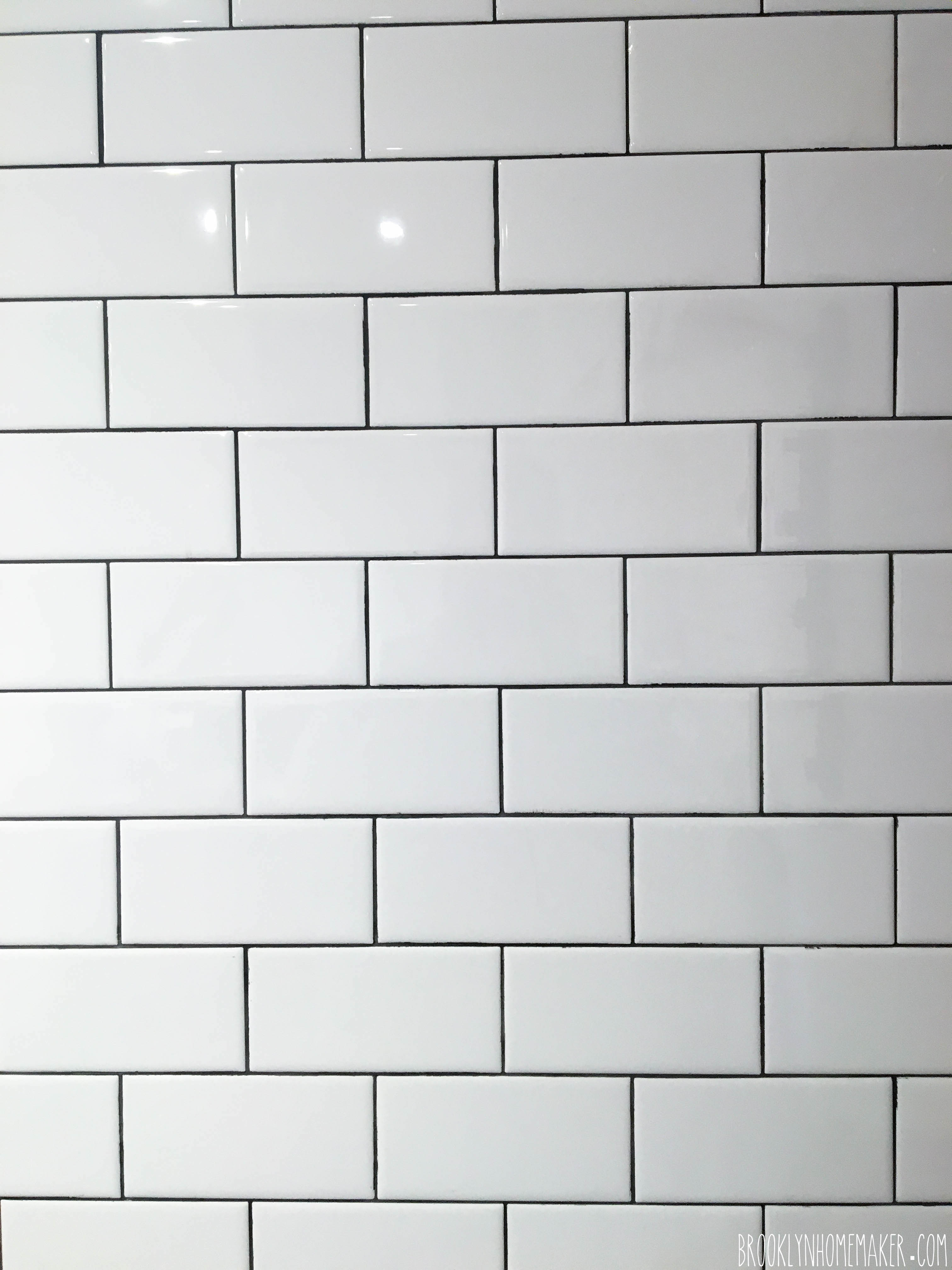 No matter how much I wiped, the tile never looked “clean”, and if I just kept wiping and wiping and wiping, after a certain point I was just wiping the grout out from where I wanted it to actually stay. So again, thanks to a little trial and error, we learned that with dark, un-sanded grout you just have to wipe until you have a very thin hazy grey layer of grout and you’ll be fine. Then once it dries you can just wipe it off with a clean dry rag to reveal the beautiful shiny tiles beneath.