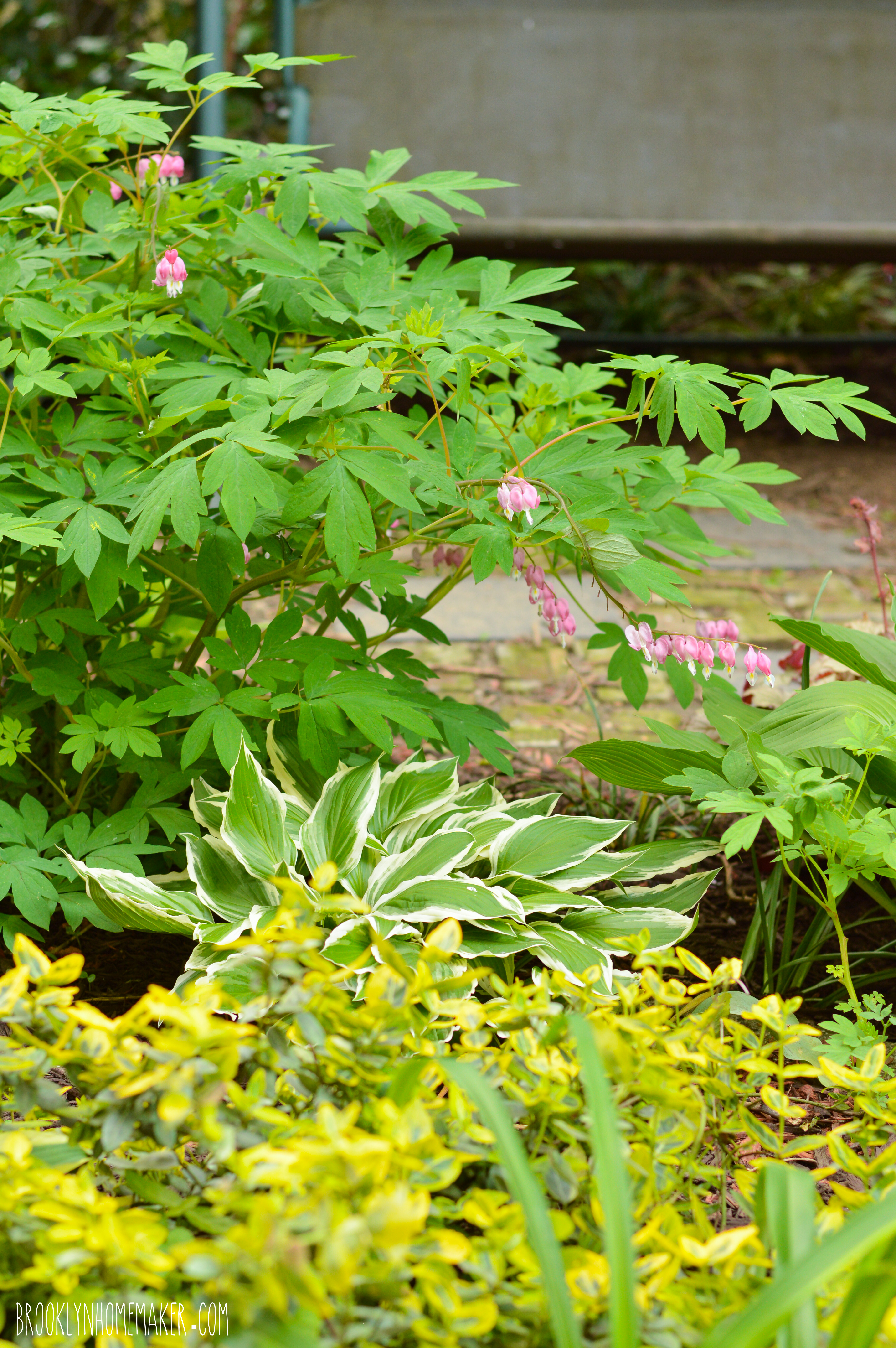 It’s incredibly difficult to find plants that thrive in dry shade. Most shade plants are moisture lovers, and most drought-tolerant plants love lots of sunshine. So, after years of experimenting, I’ve basically learned that Hostas are my best friend if I want the yard to look green and lush. I know they’re kind of boring, but there are so many different colors and shapes and sizes available these days that even a yard filled with Hostas can look interesting and modern. I’d actually already figured this out before my last yard post, but at that point I’d only gotten around to planting few of them. These days they’re all over the place.