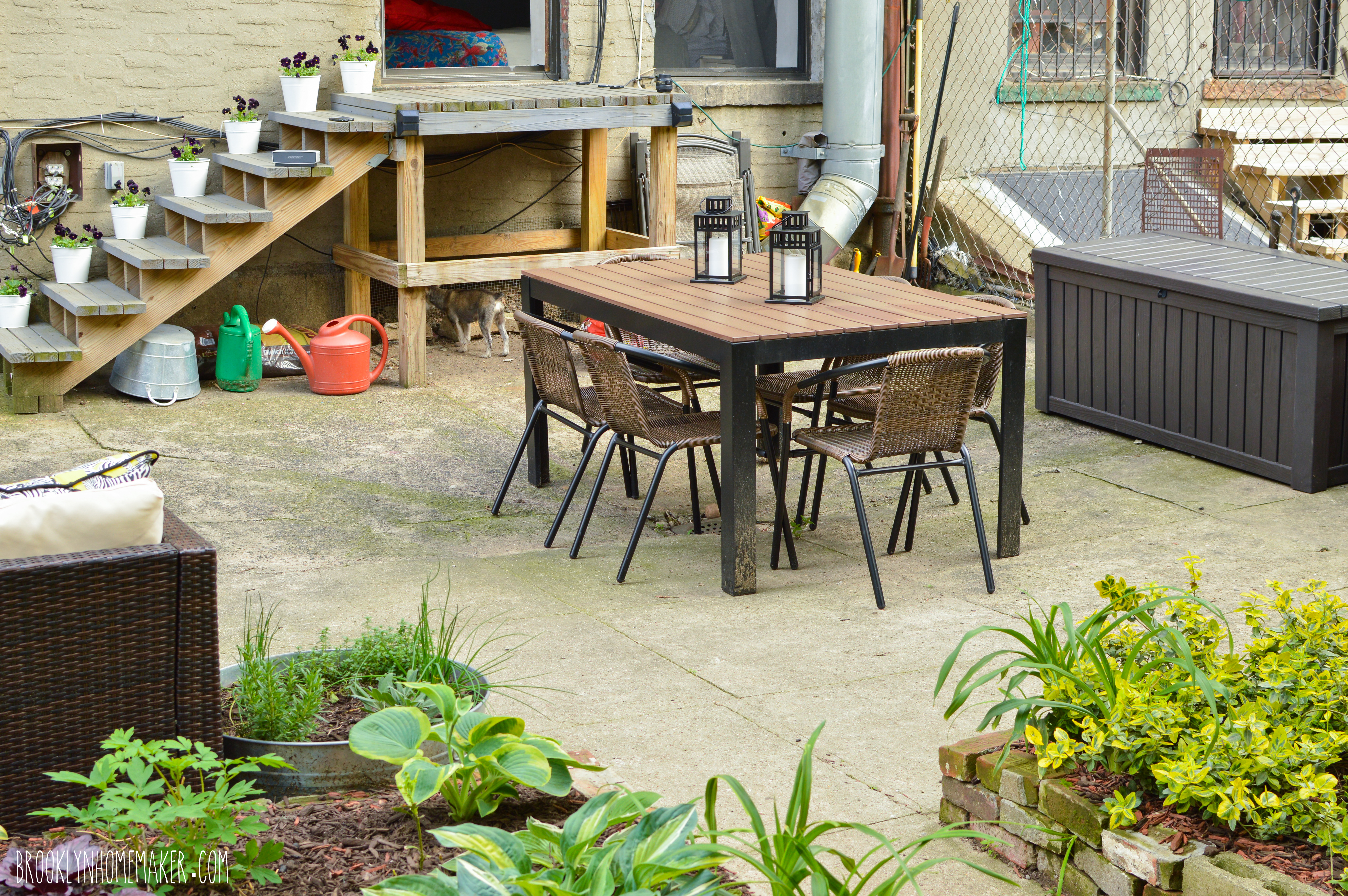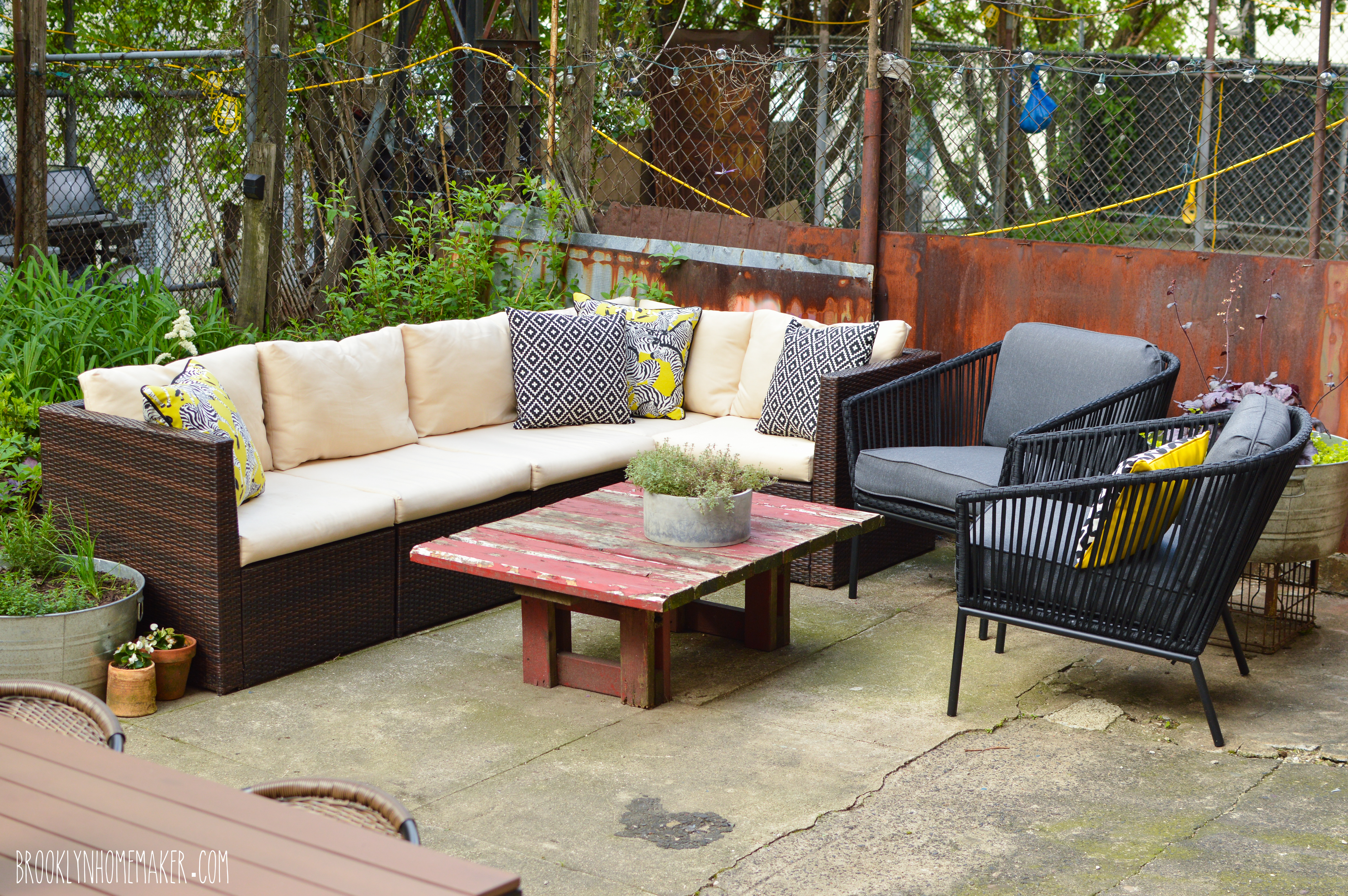 I grew up in cow and corn country in Upstate New York, so I was always outdoors in nice weather, and even though I live in Brooklyn now my love for the outdoors is just as strong. We were lucky enough to find an apartment with outdoor space years ago, but if you’ve been reading for a long while now, you’ll remember that the space out back was a little, well, rough around the edges when we first moved in.