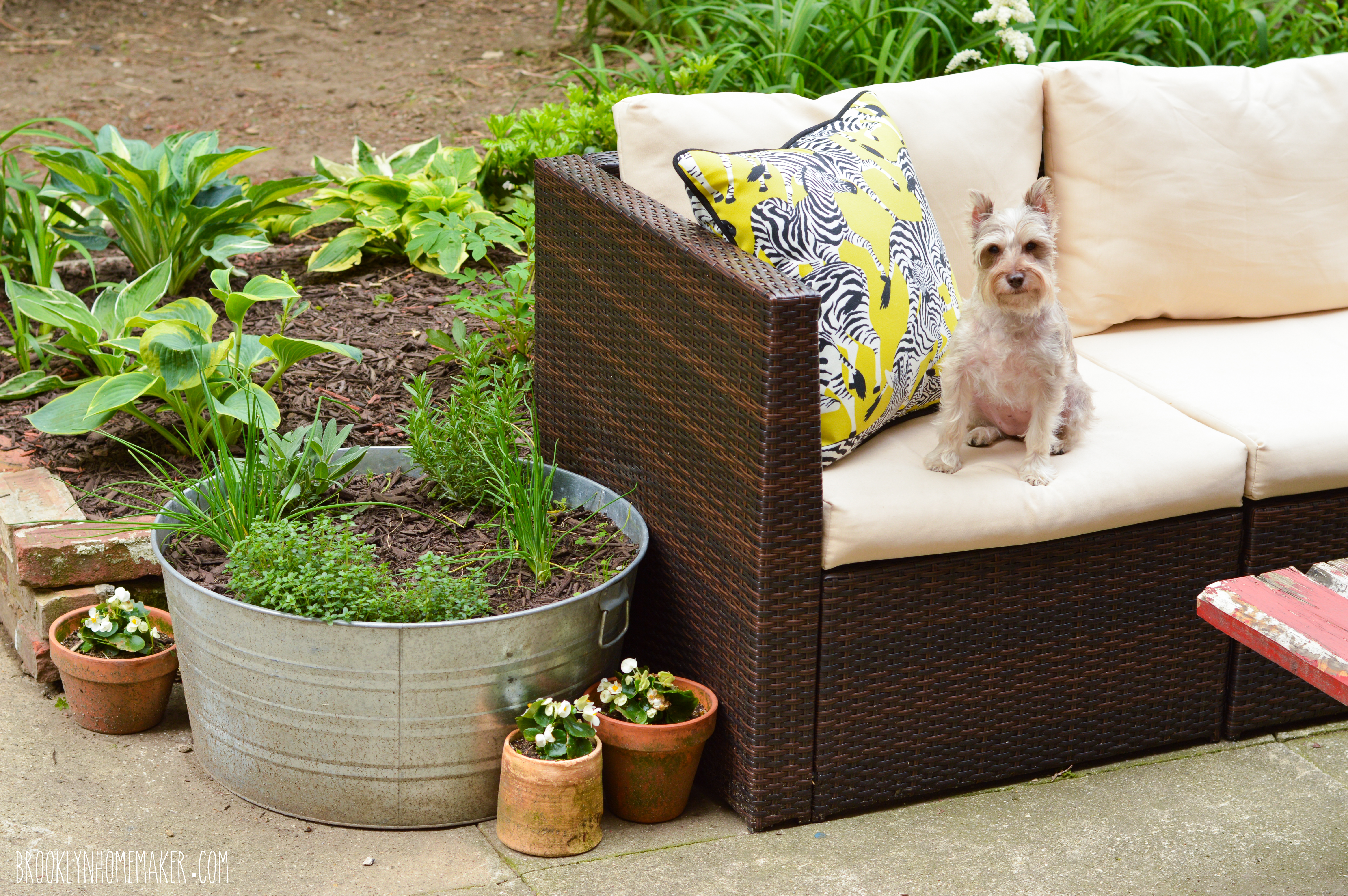 That post was basically the beginning of when we were able to finally start planting, and since then things have changed quite a bit so I thought you might enjoy a little update.  I’ve planted plenty in the past few years, figured out what plants do well and which ones don’t, and added some fancy-pants new outdoor furniture to boot.