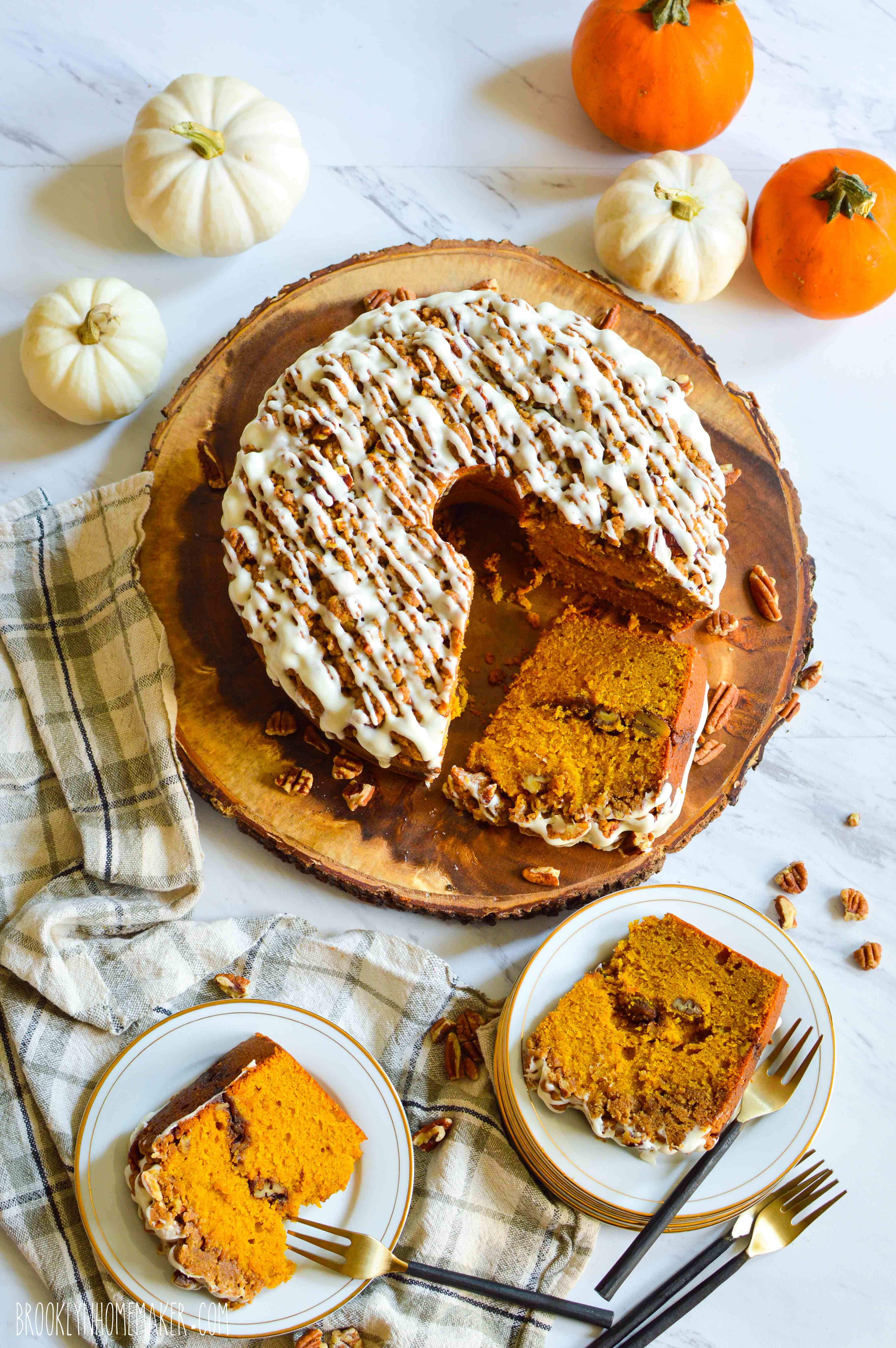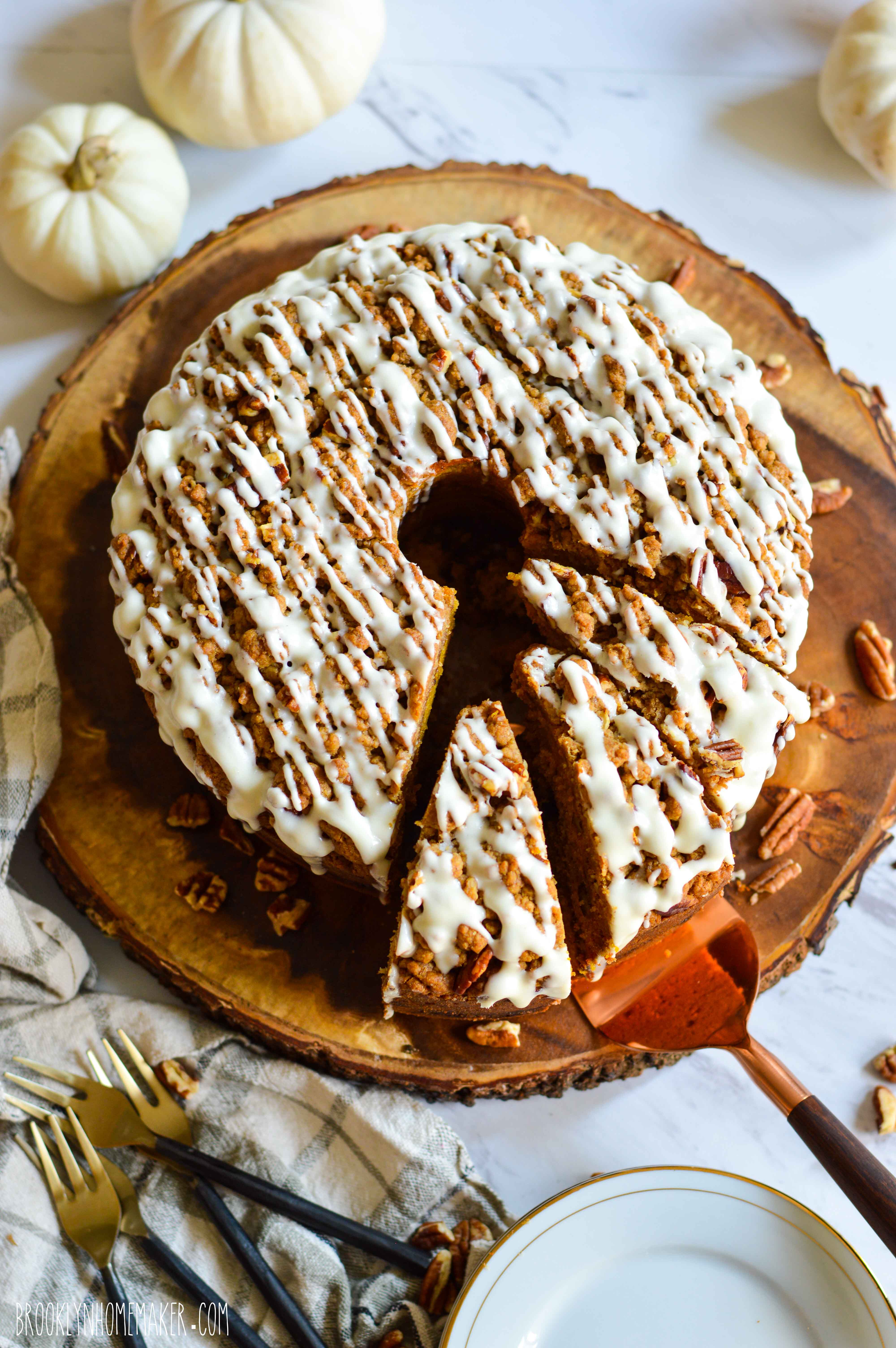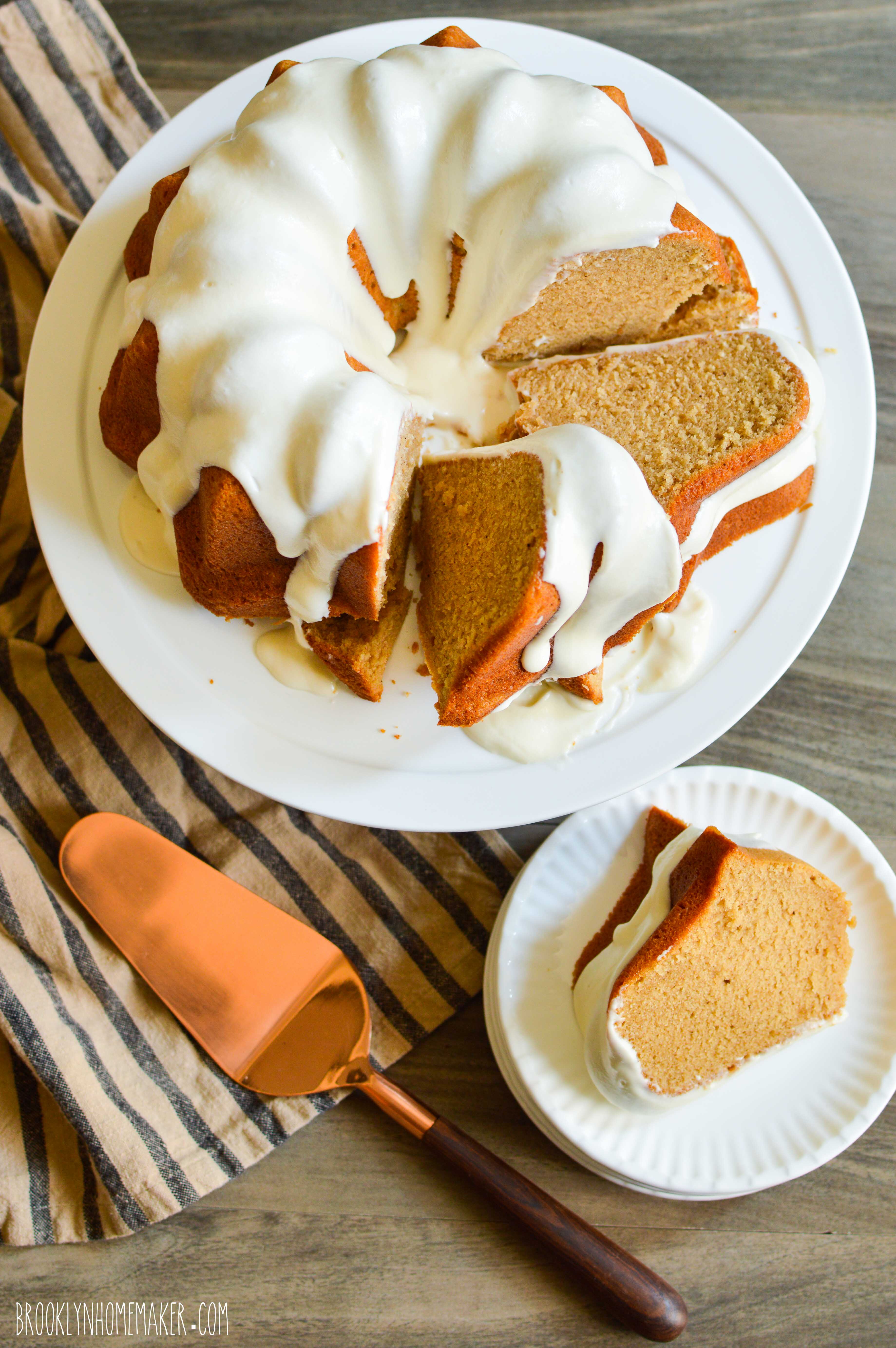 Pour the glaze in a steady stream over the center of the cake. Place a pan under the rack to catch any glaze drips. Let the glaze harden for at least 30 minutes before slicing.