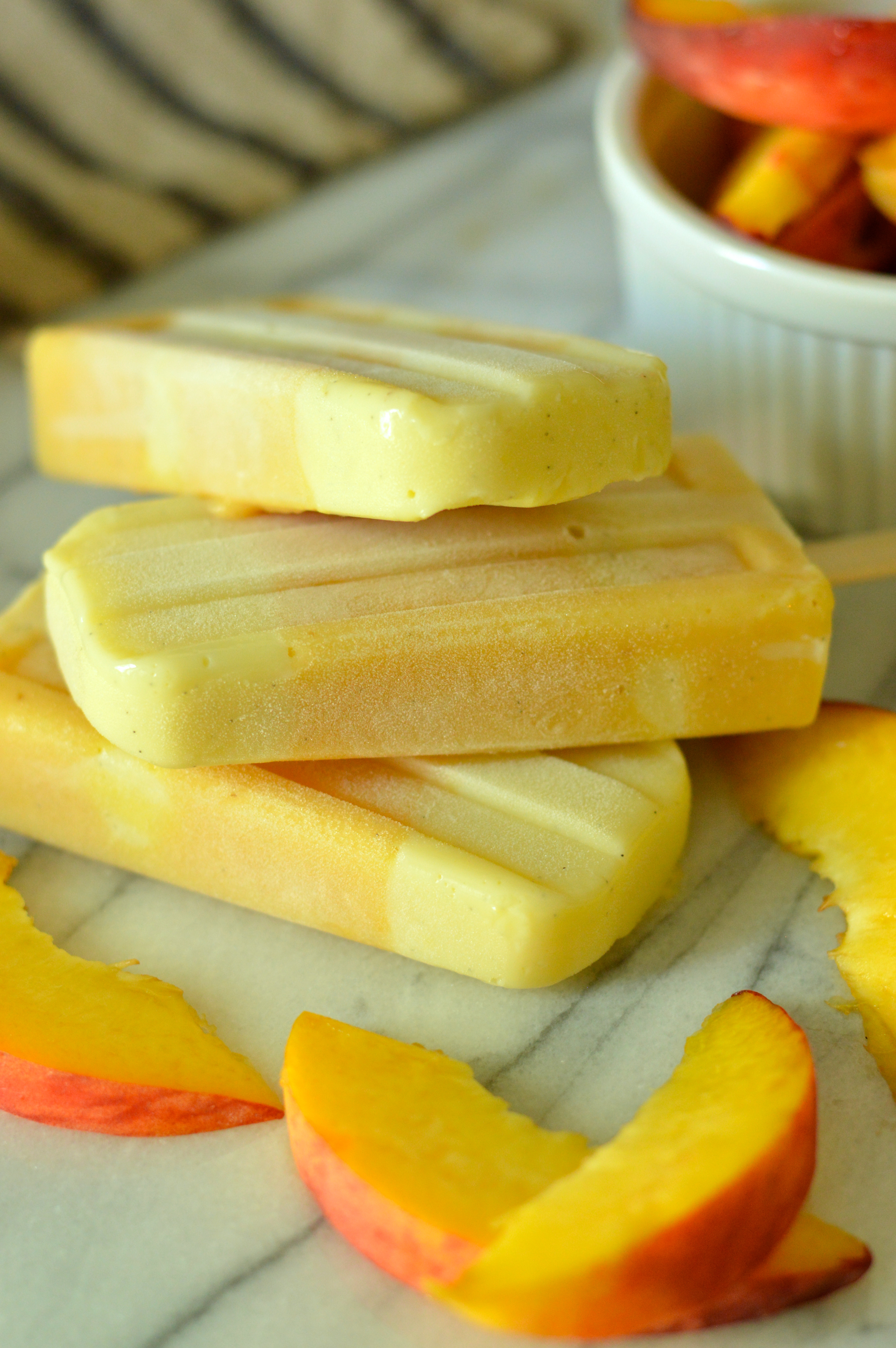 I did some reading online and found out that since ice pop manufacturers are able to freeze their pops much faster at lower temperatures that home freezers, some type of thickener like cornstarch or gelatin is needed to help give homemade ice pops a better texture. This also keeps the juices from separating before they freeze, and helps prevent the pops from dripping while you eat them. Since ice pops (and ice cream) are frozen, they also need a little bit of extra sugar because freezing-cold foods slightly dull your sense of taste. I went ahead and added juuuust a little extra sugar, and a little bit of cornstarch, and bingo! Success!