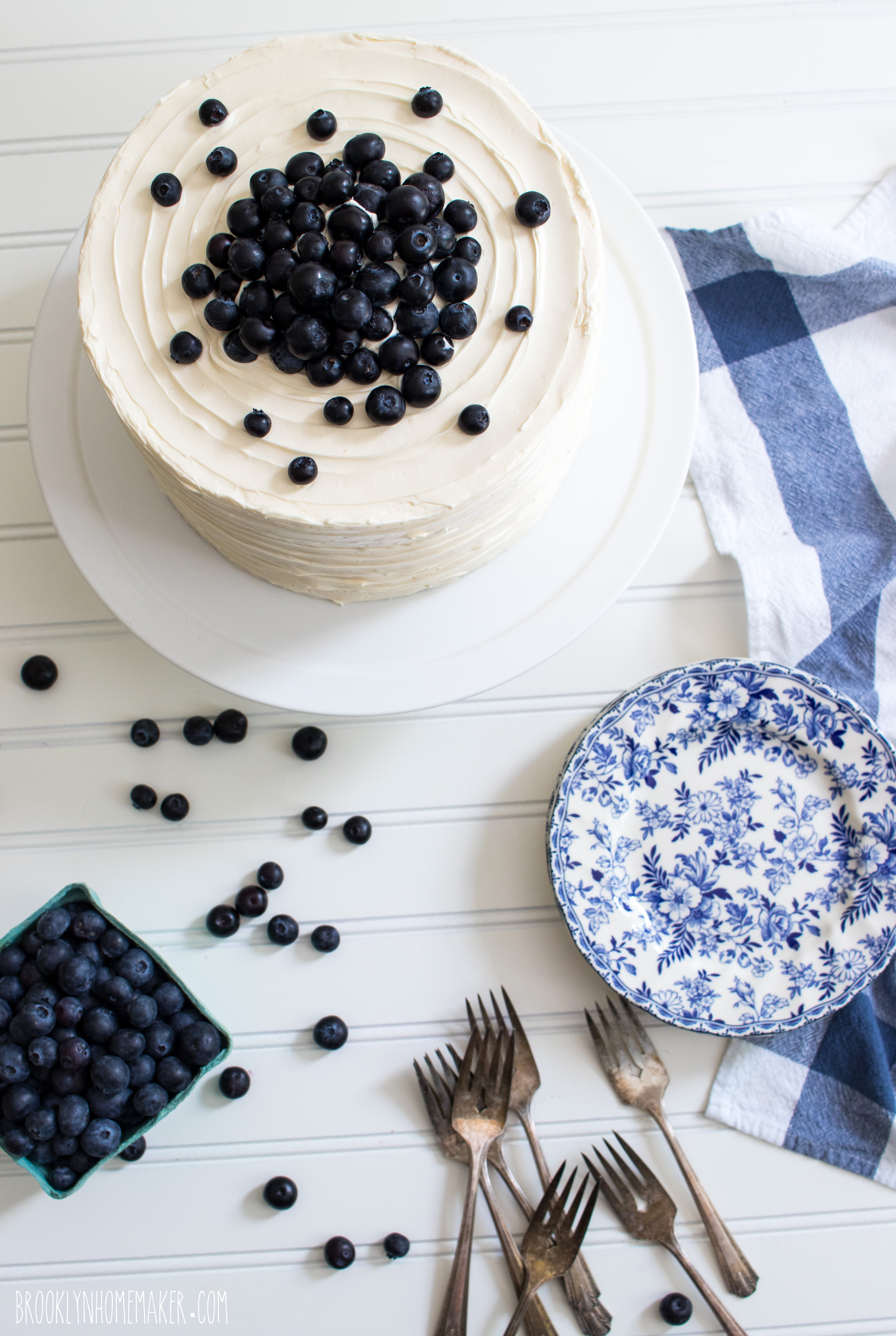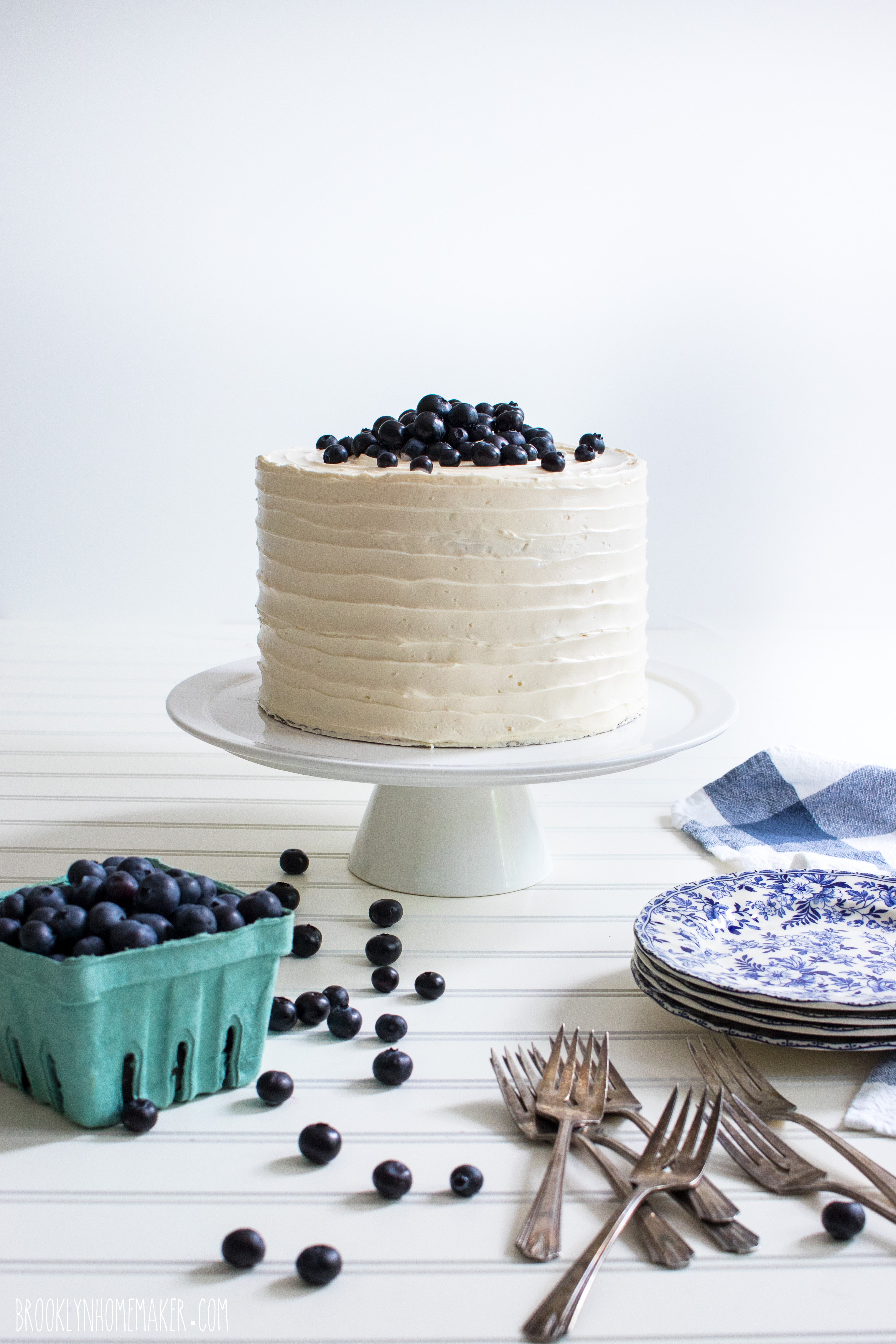 At first I considered adding lemon zest to the icing, but opted for simple vanilla to avoid competing with the blueberry flavor. Last but not least, the cake was topped with a mound of fresh blueberries, both for flavor, and so that people could tell it was a berry cake even though the icing was solid white.