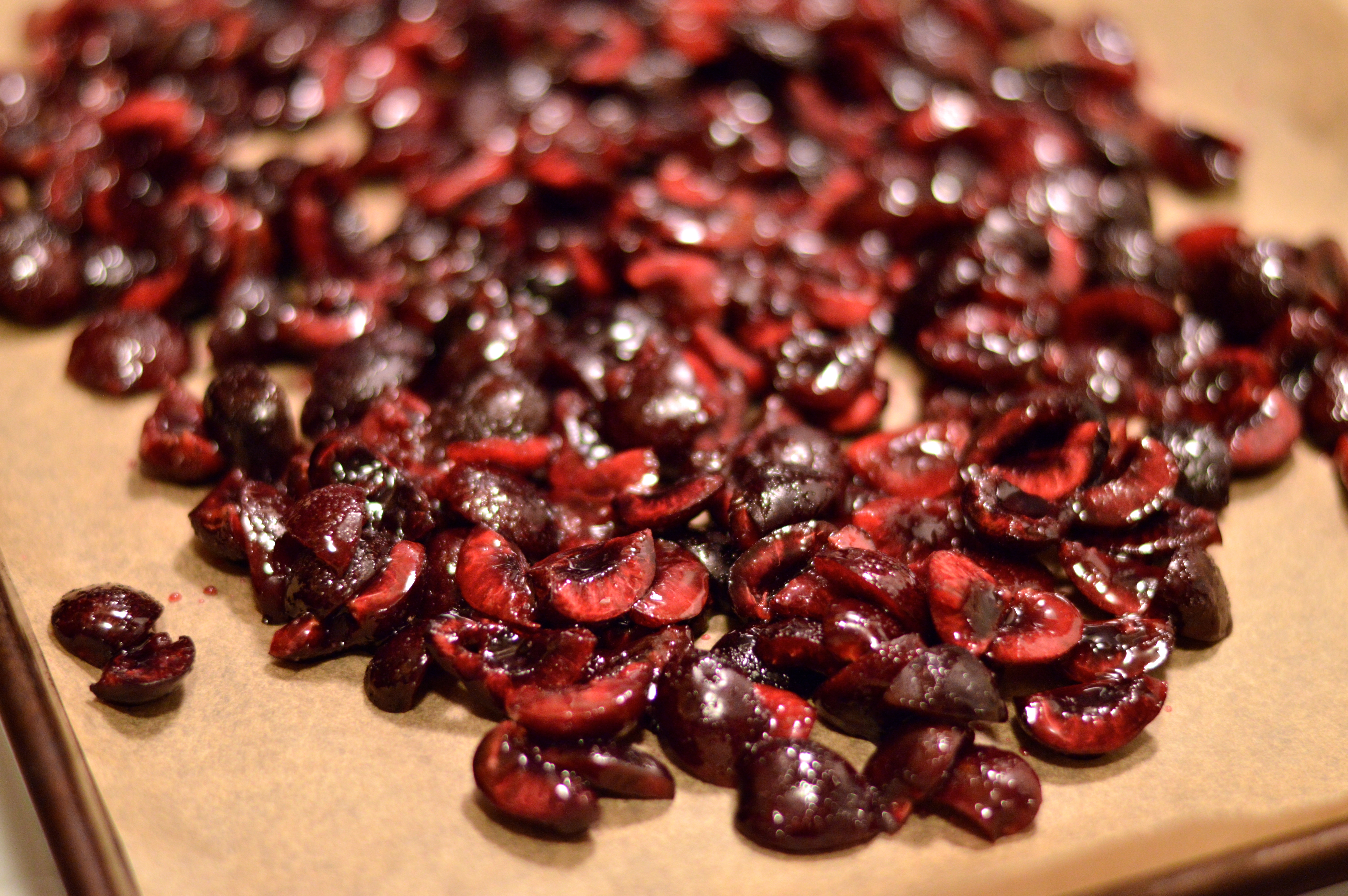 Preheat the oven to 400. Wash, pit and quarter your cherries. Toss the quartered cherries in the sugar, salt, and bourbon to coat. Spread evenly over a parchment lined baking sheet, and roast for 20 to 25 minutes. Toward the end, watch that the cherry juices don’t burn.