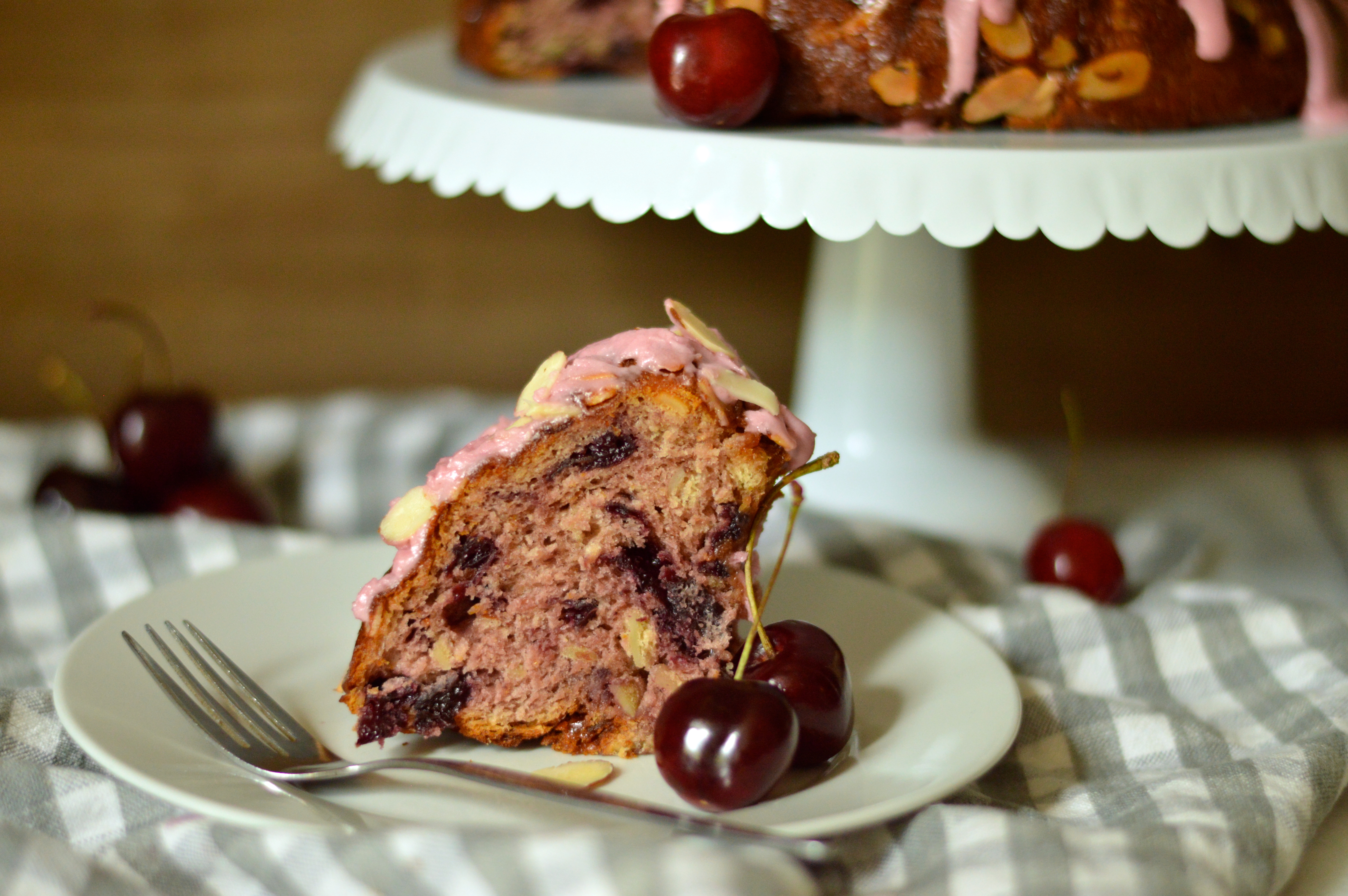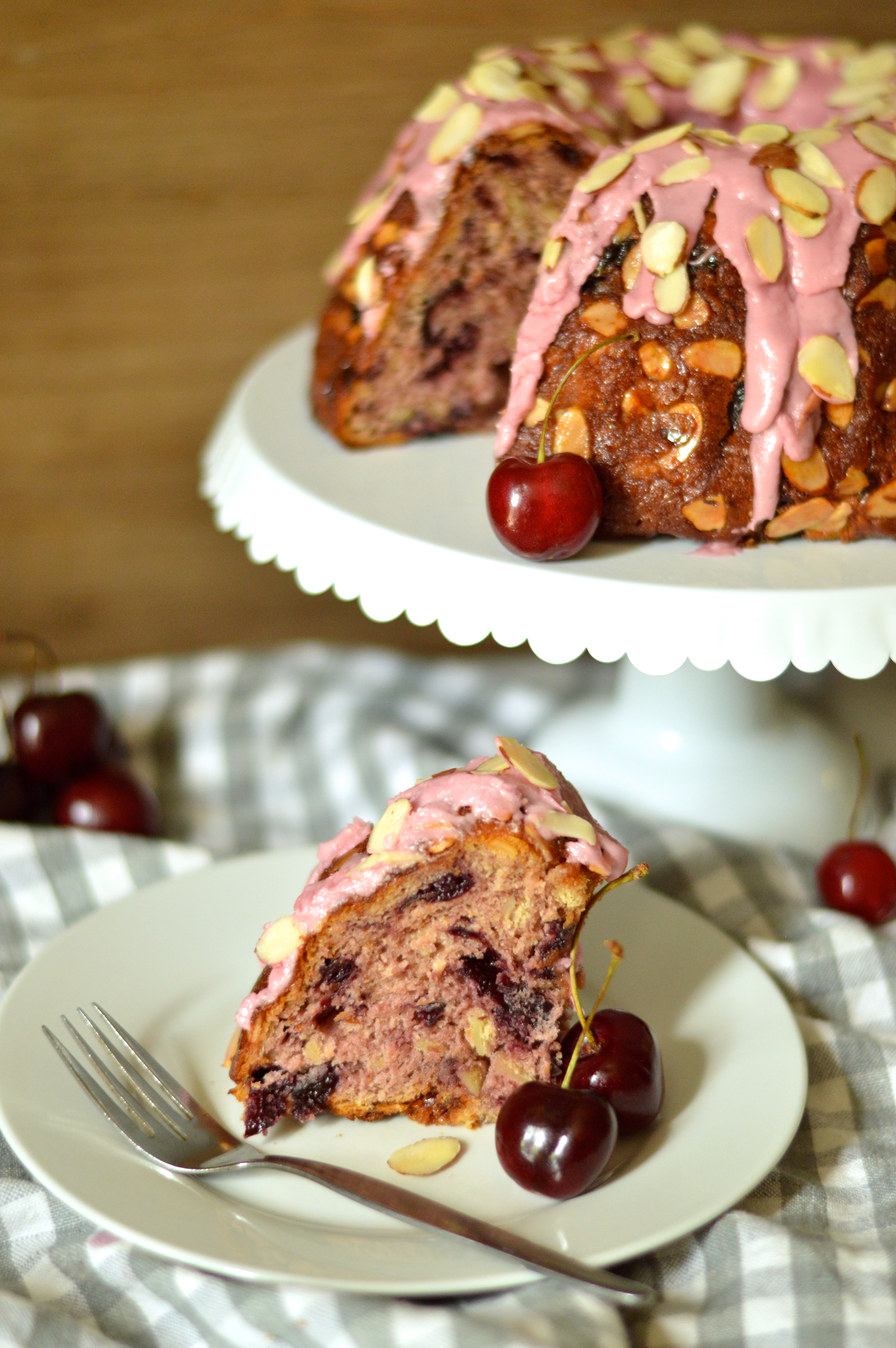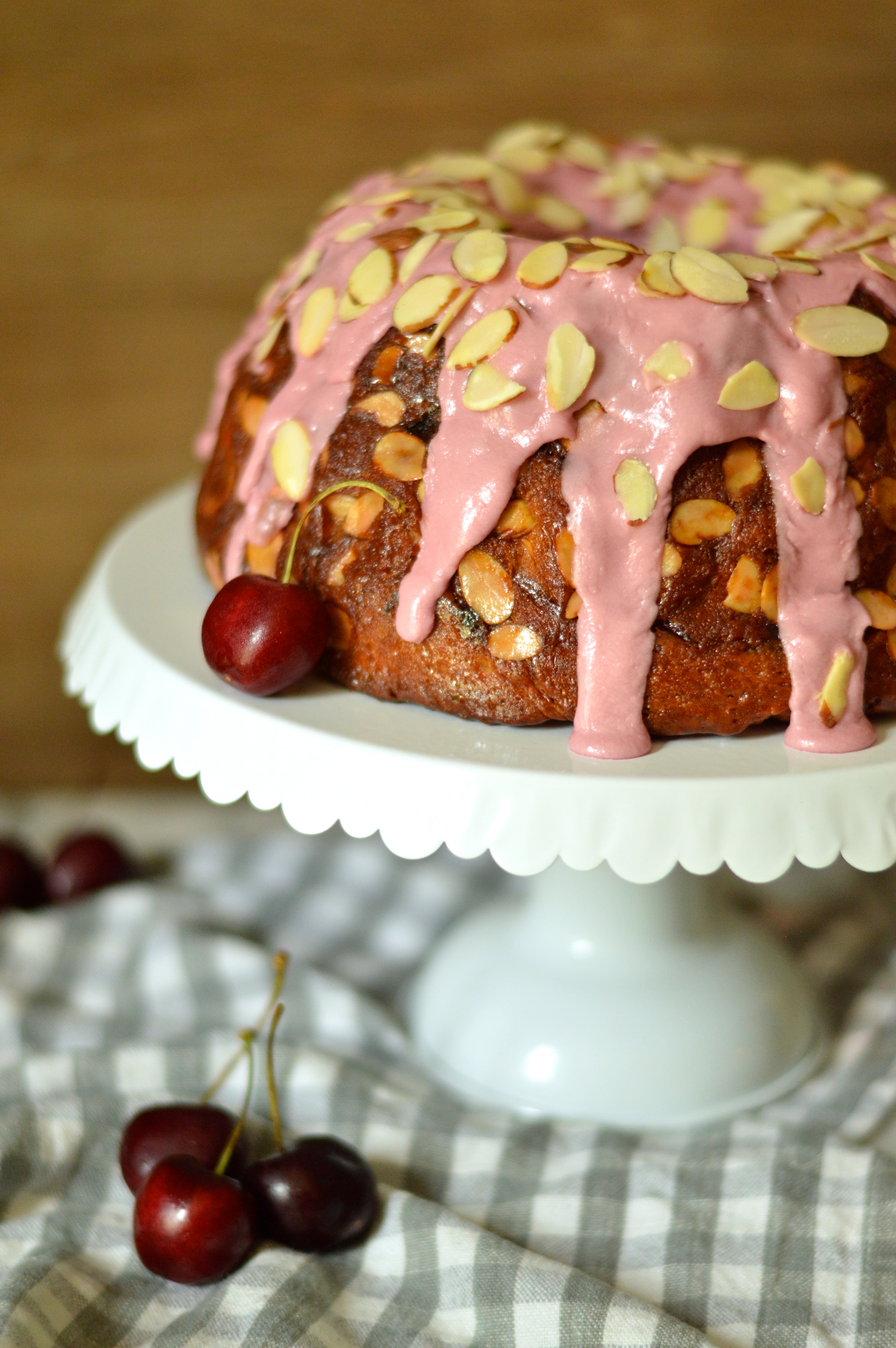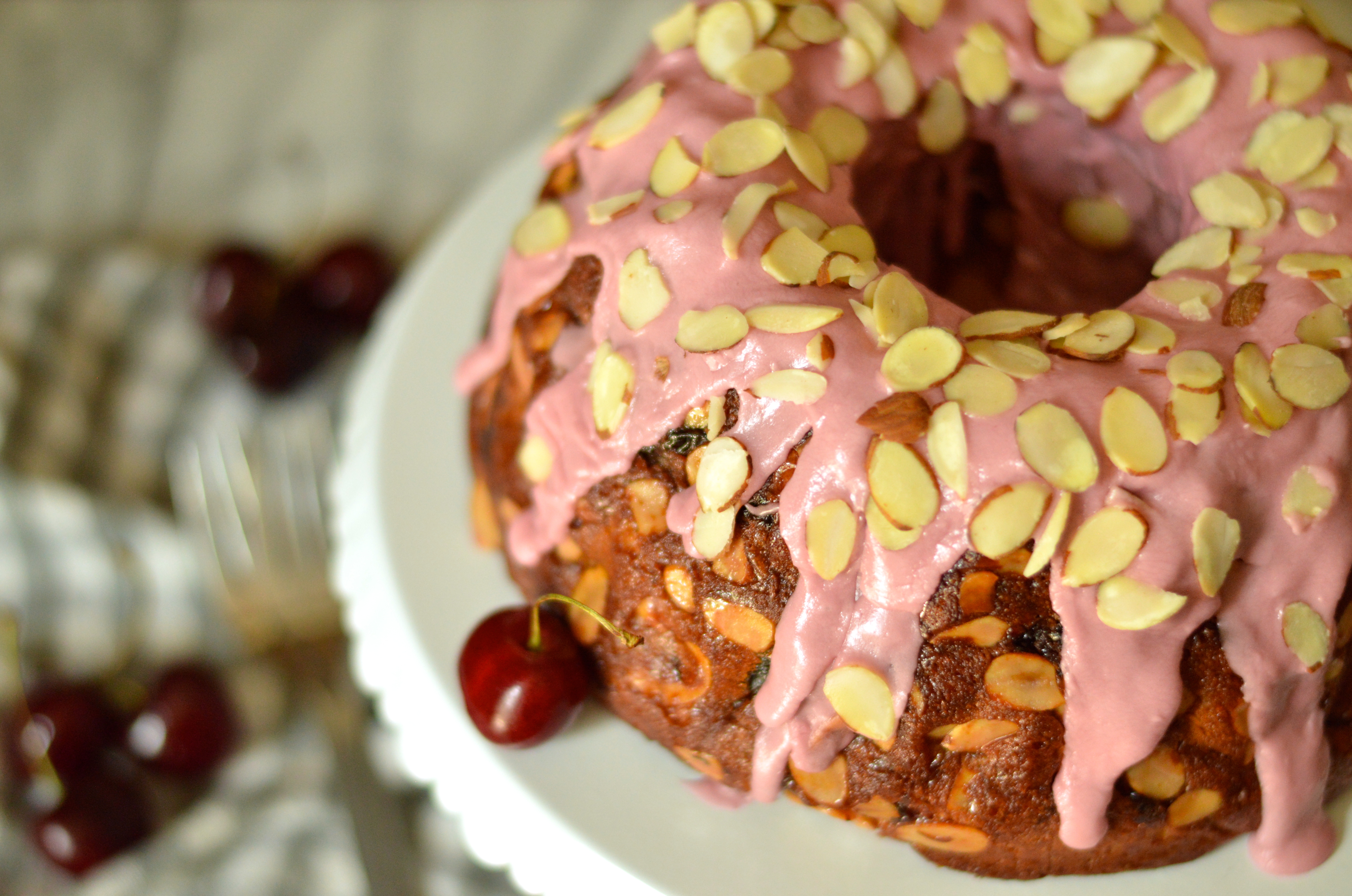 Roasted Cherry Kugelhopf with Cherry Bourbon Glaze