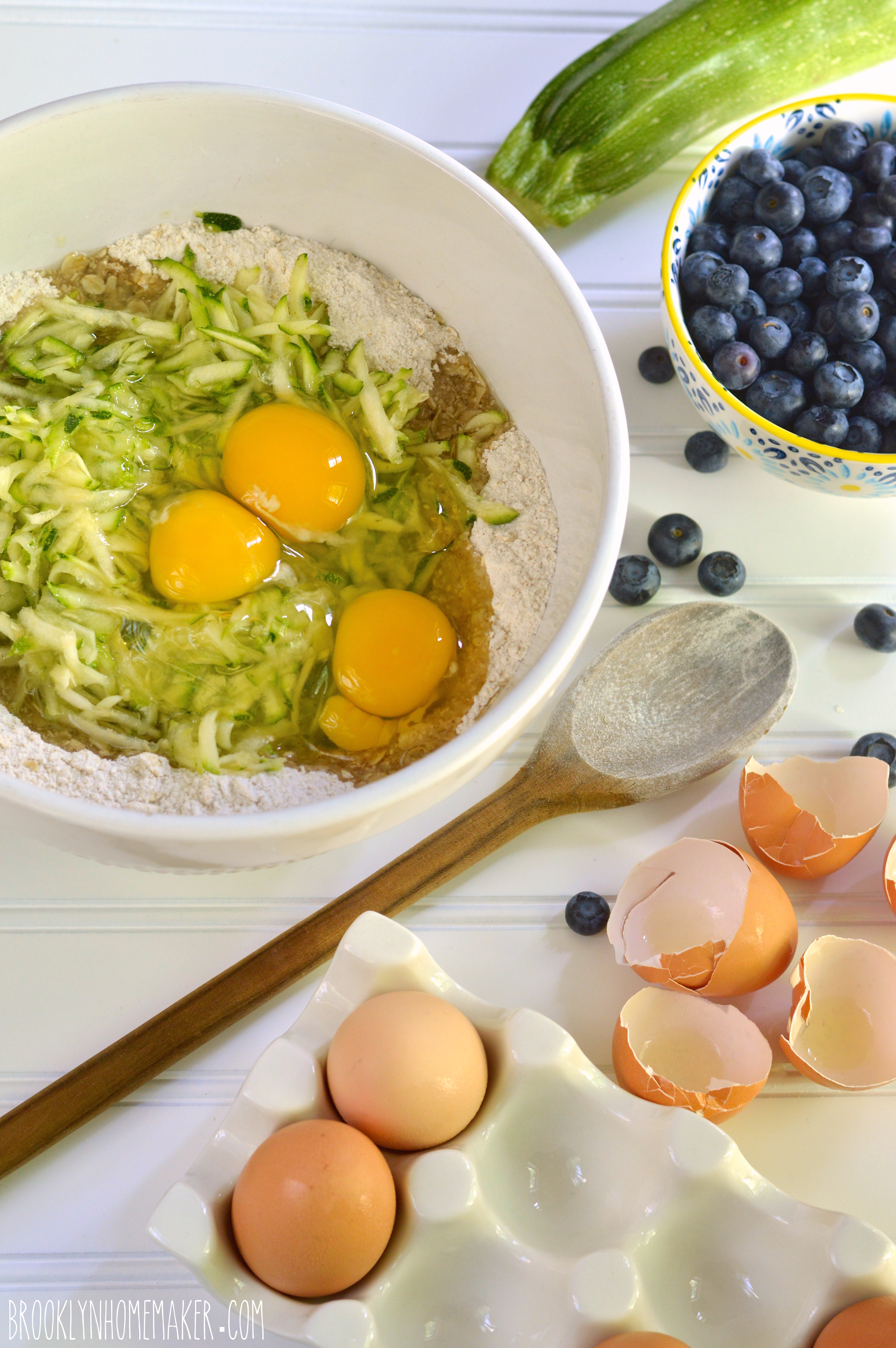 Reserve about 1/2 cup of the blueberries for the decoration/topping of the cake. Pulse the remaining 3 1/2 cups berries in a food processor just to break them up a bit. Don’t puree them. You can also mash them up with a potato masher instead.