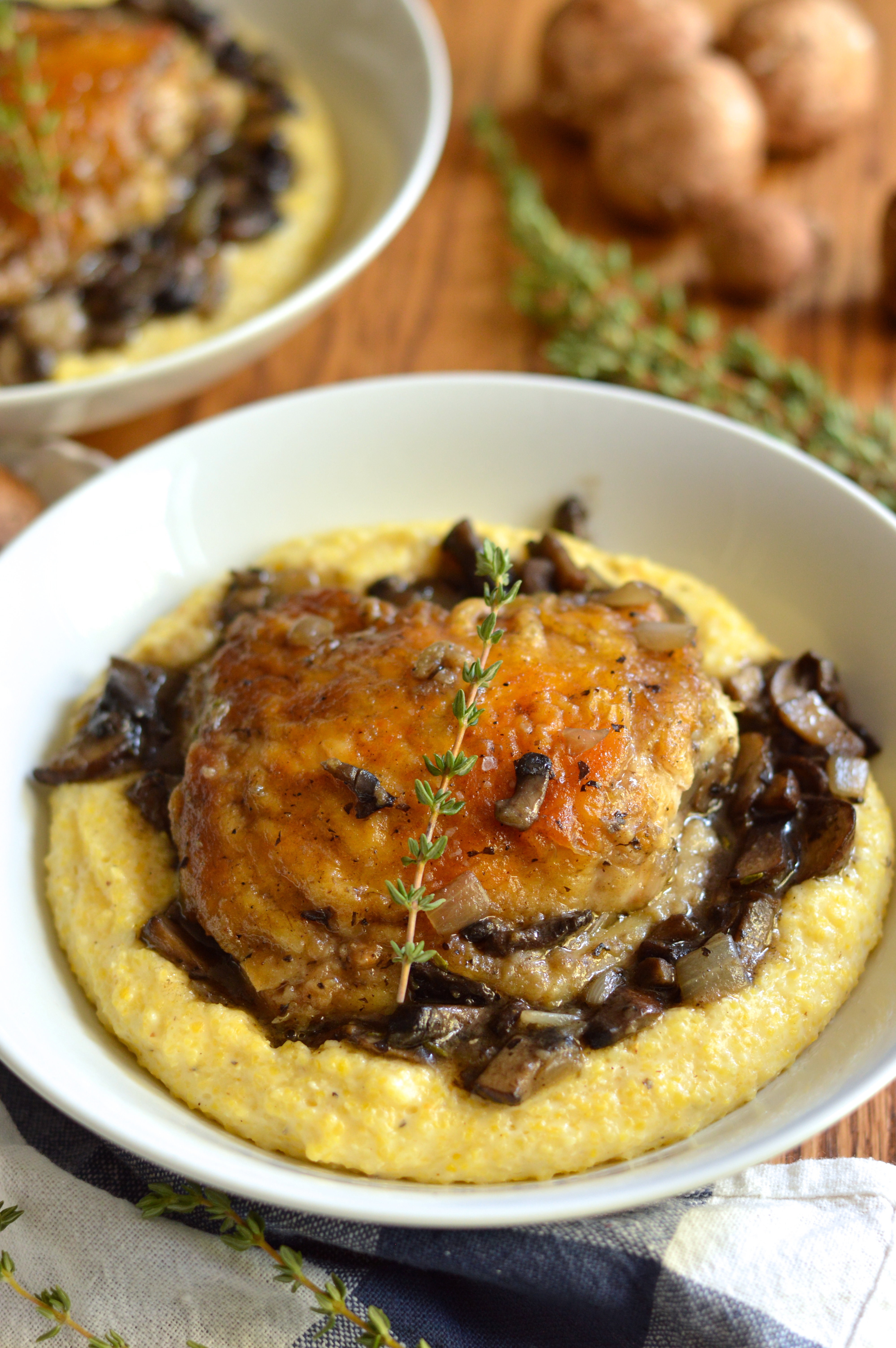 braised chicken thighs with mushrooms and creamy polenta | Brooklyn Homemaker