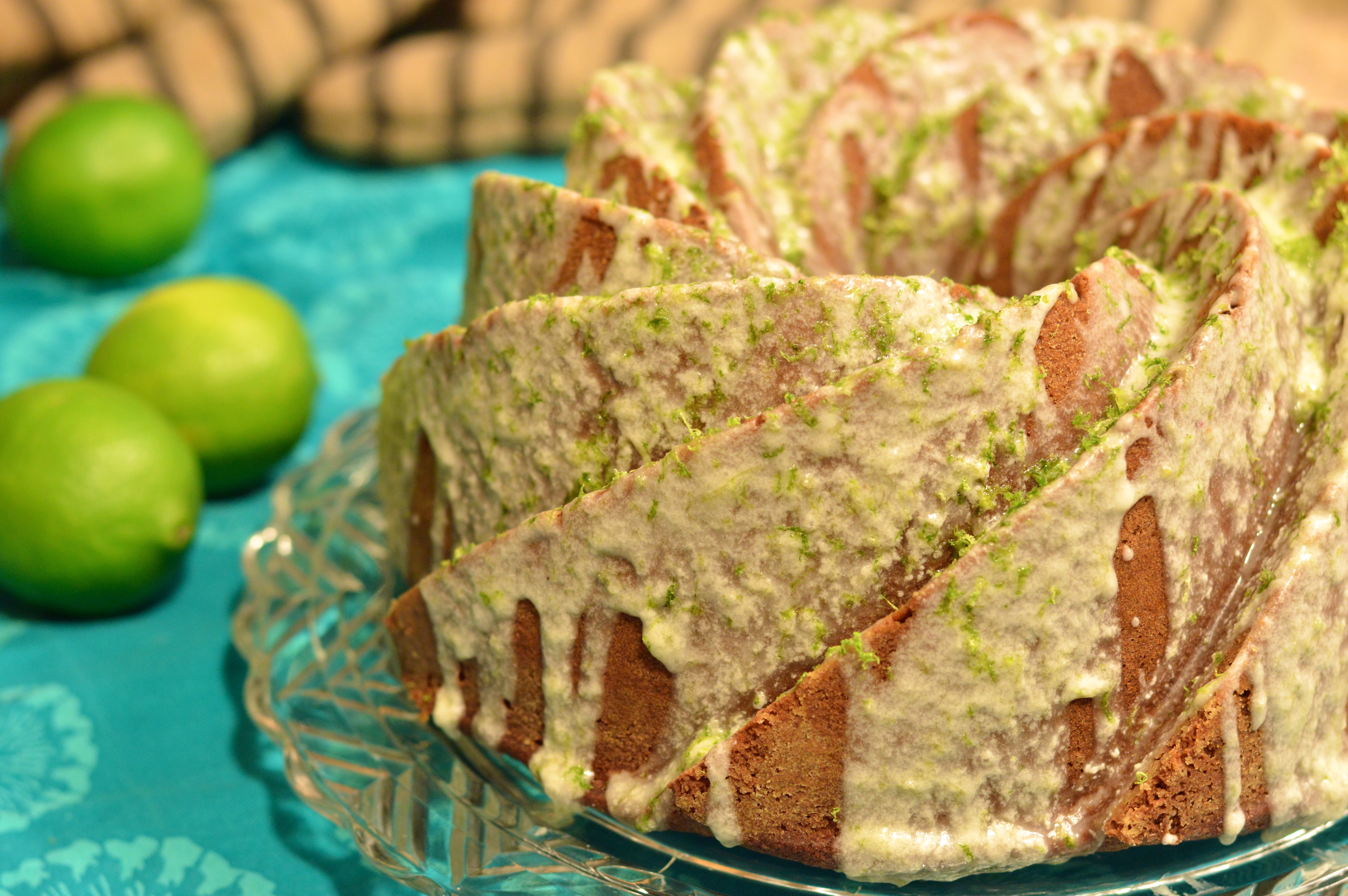 Zest and juice limes (you want about 4 tablespoons of juice) Combine with confectioners’ sugar and whisk until smooth. Pour over top of cooled cake, and allow glaze to drizzle down the sides.