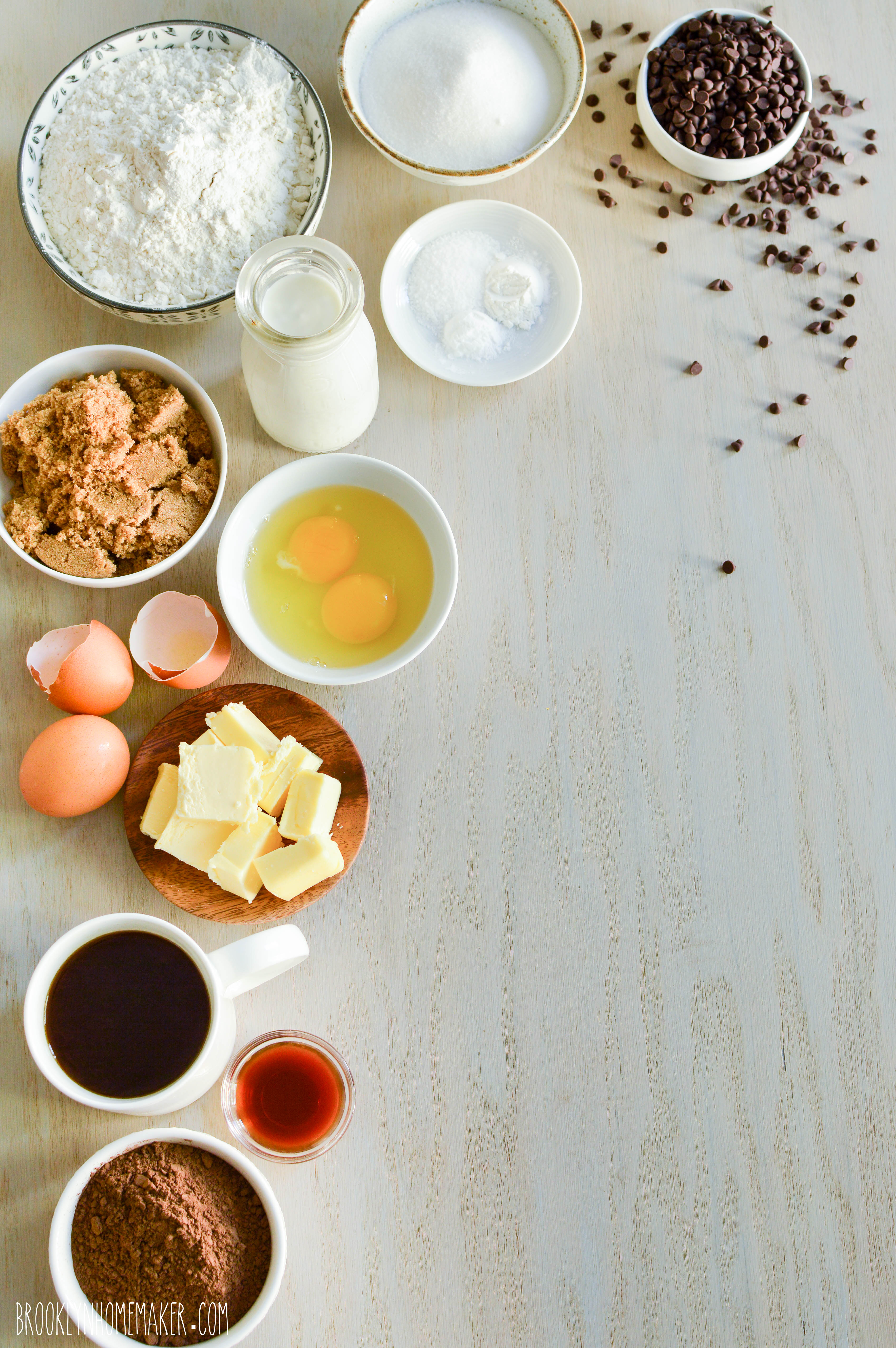 **Mini chocolate chips tend to not sink in the batter while the cake bakes, and should stay evenly distributed throughout the cake. If you use regular size chocolate chips, odds are they’ll all sink to the bottom and can even cause the cake to stick to the pan.