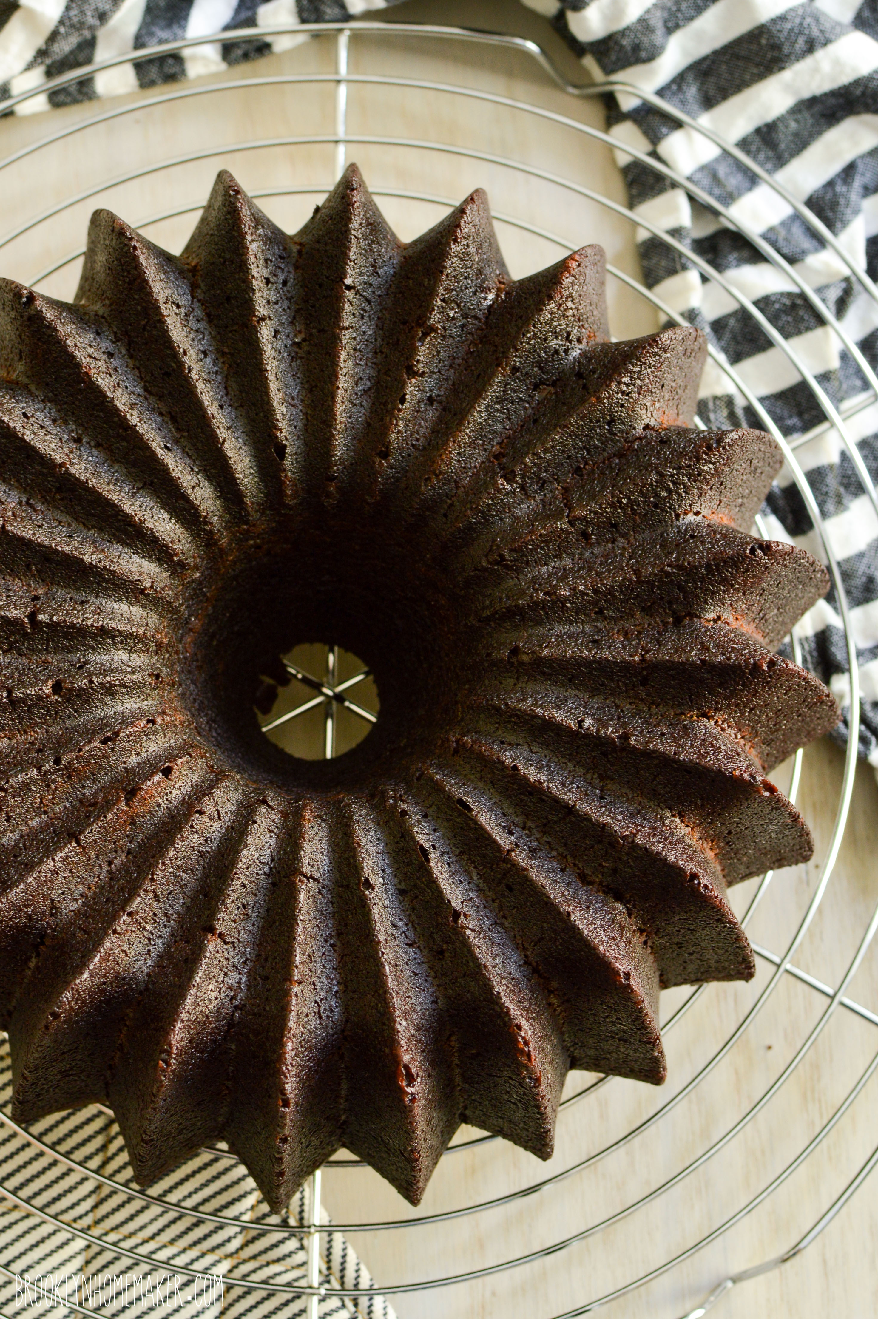 Preheat oven to 350 F. Butter and lightly flour a 10-12 cup bundt pan. Tap out excess flour. Refrigerate pan until ready for use.