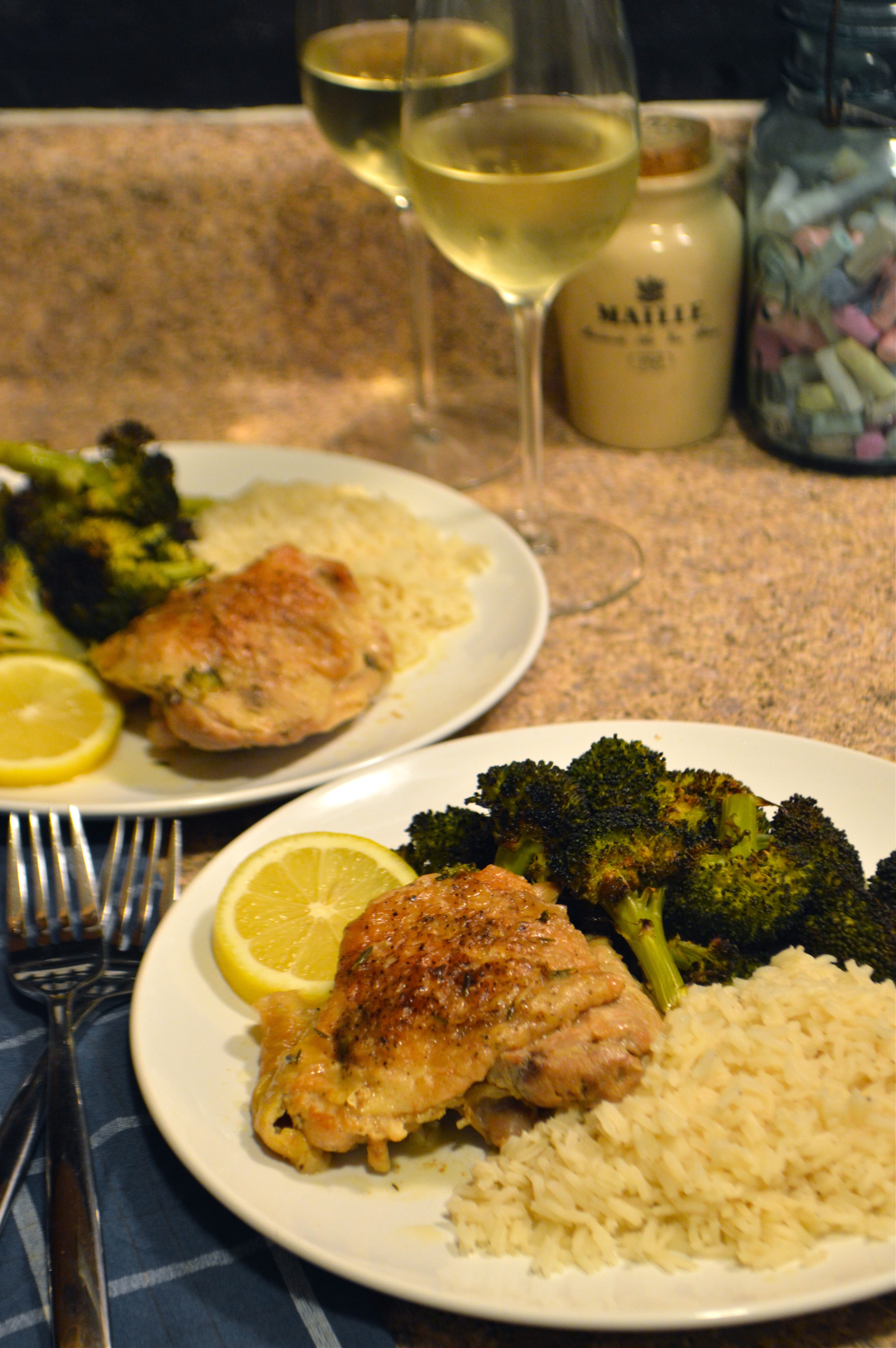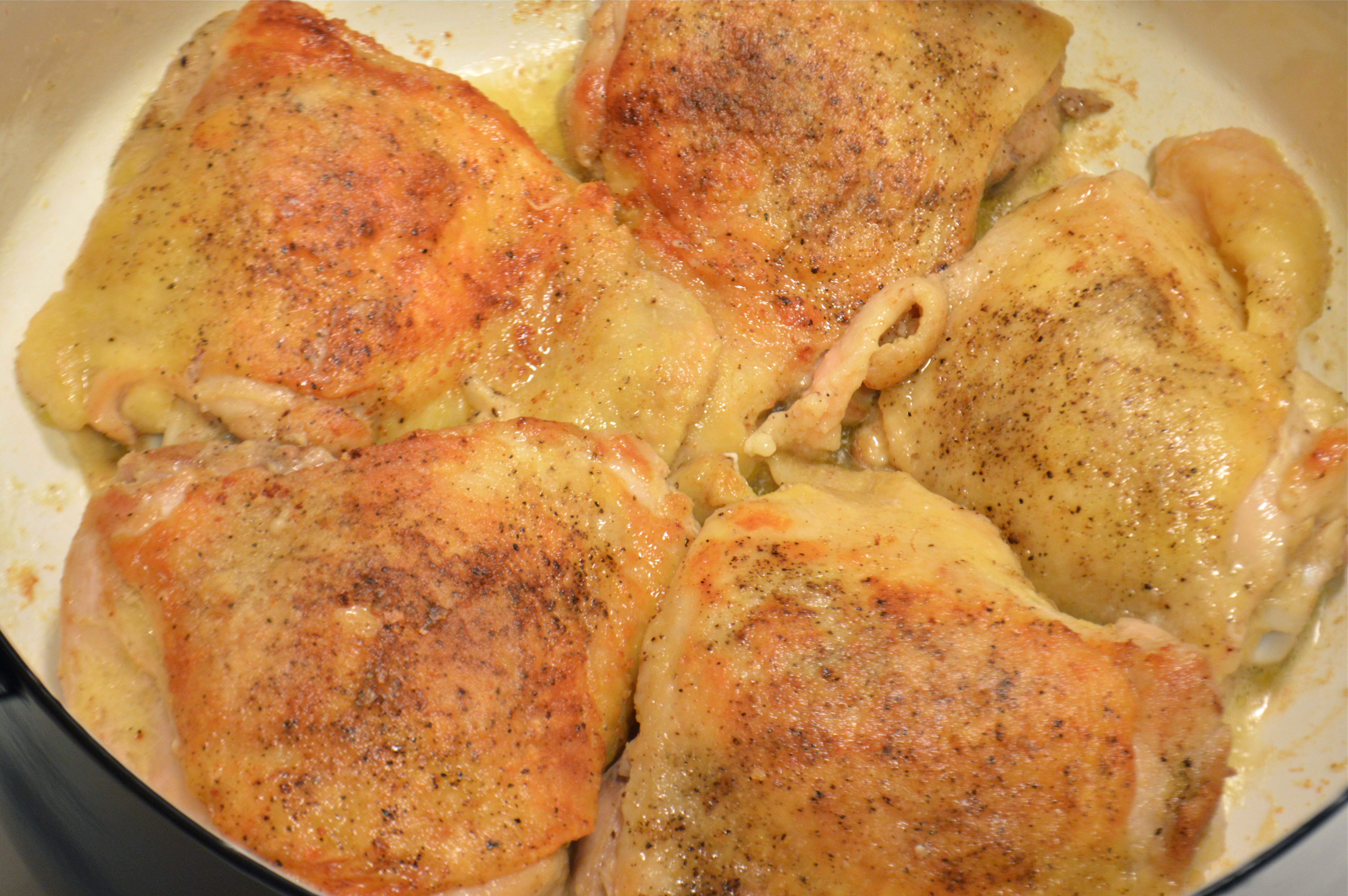 Wash and dry chicken thighs and place in a shallow dish. Combine all remaining ingredients, mix well, and pour over the chicken thighs. Turn the pieces over and over until they’re all well coated in marinade. Press the chicken down into the dish so it’s as submerged as possible. Cover the dish with plastic wrap and refrigerate for 4-8 hours, turning the chicken a few times so it’s all well coated.