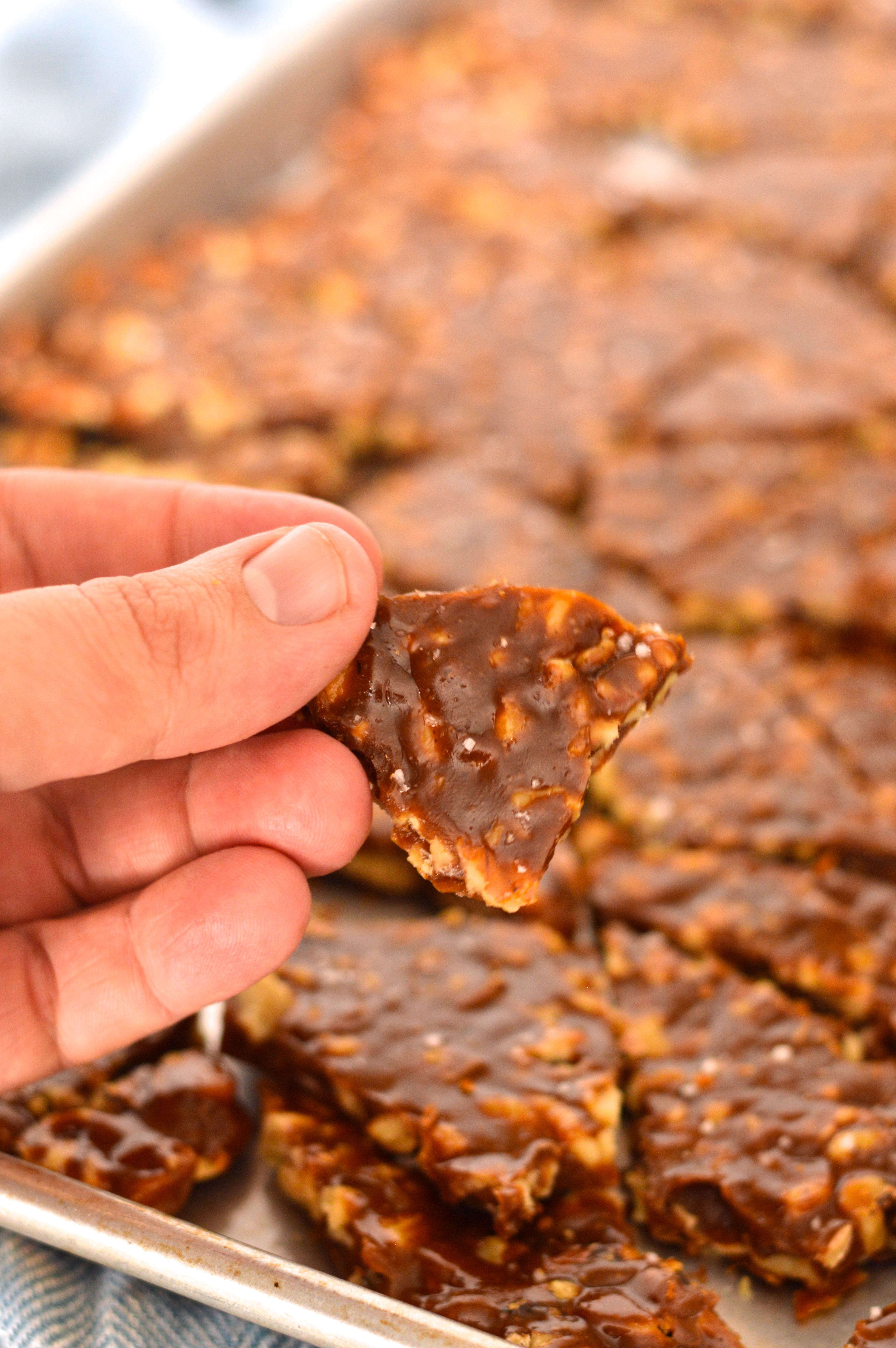 The crisp cookies soften as they absorb some of the liquid from the cream and so, rather than separating and wilting, the whipped cream actually thickens even more as the cookies soften up. When left for several hours (or overnight) the whole thing sort of takes on one perfect smooth, sliceable texture, just like a rich silky cake.