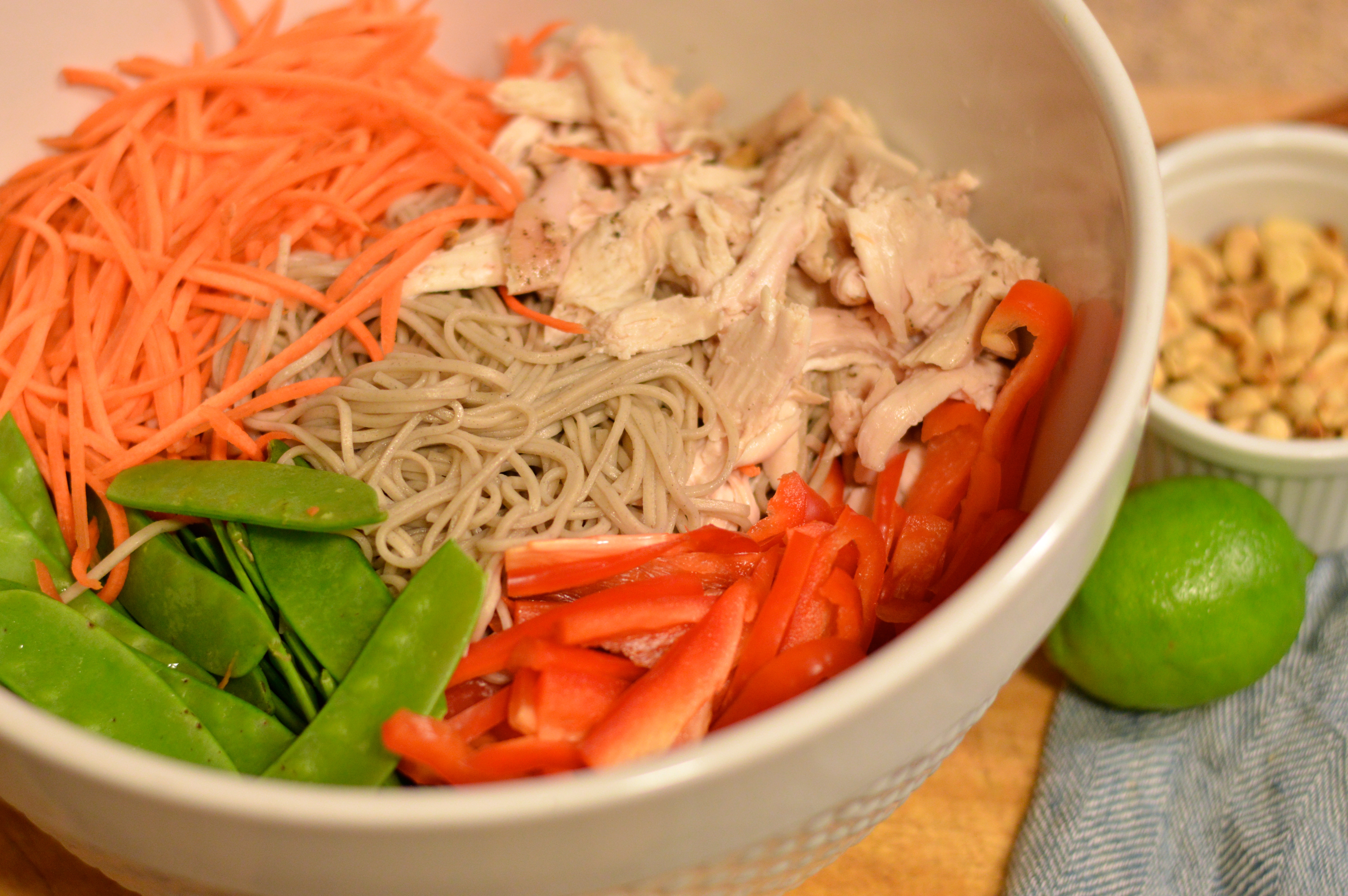 Now that the weather is warming up I’ve been looking for light summery (I know we’re not quite there yet, but a man can dream) salads and cold dishes to eat on hot days. One of my favorite warm weather meals is a soba noodle salad with lots of veggies and a spicy peanut dressing.