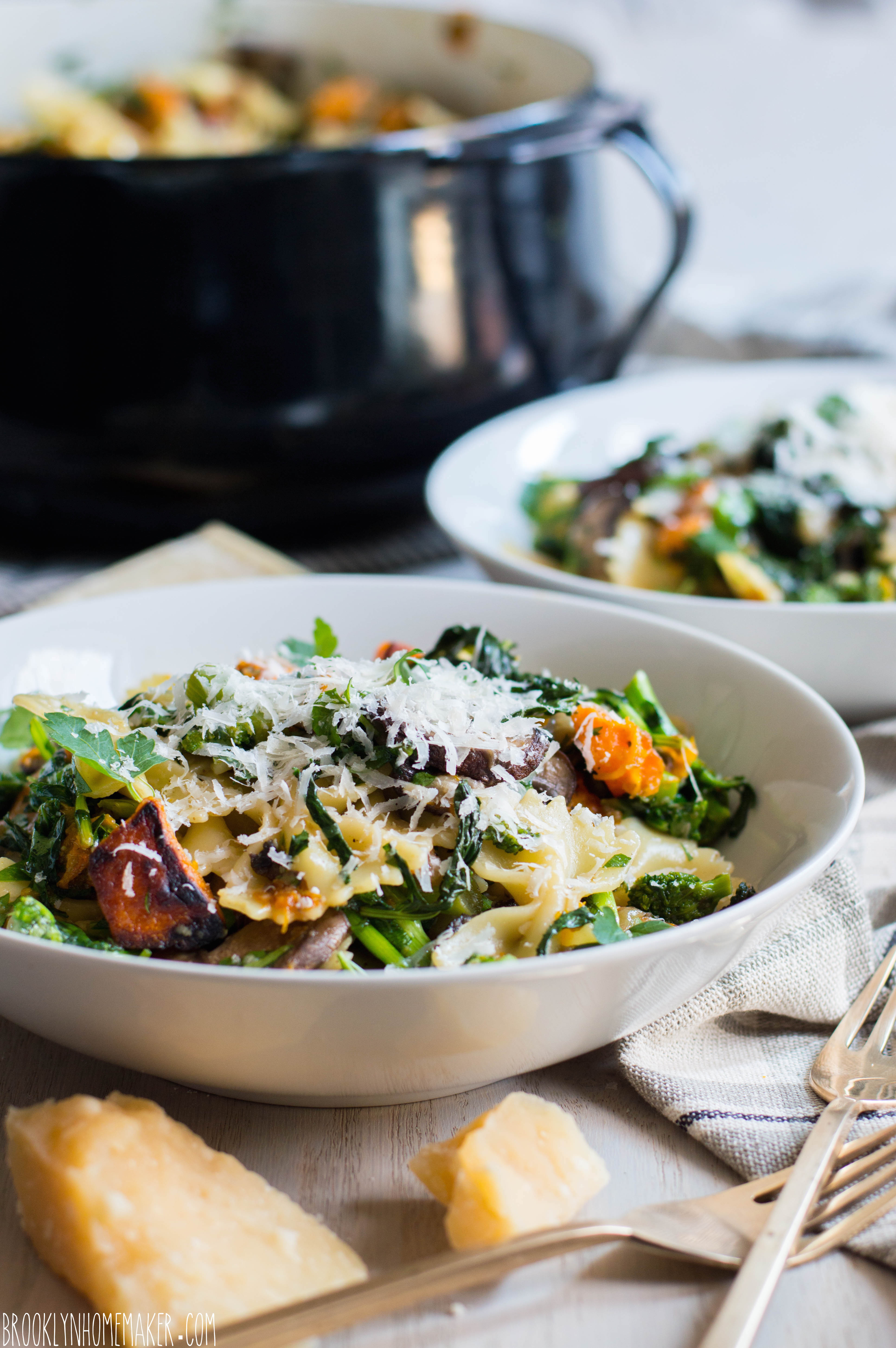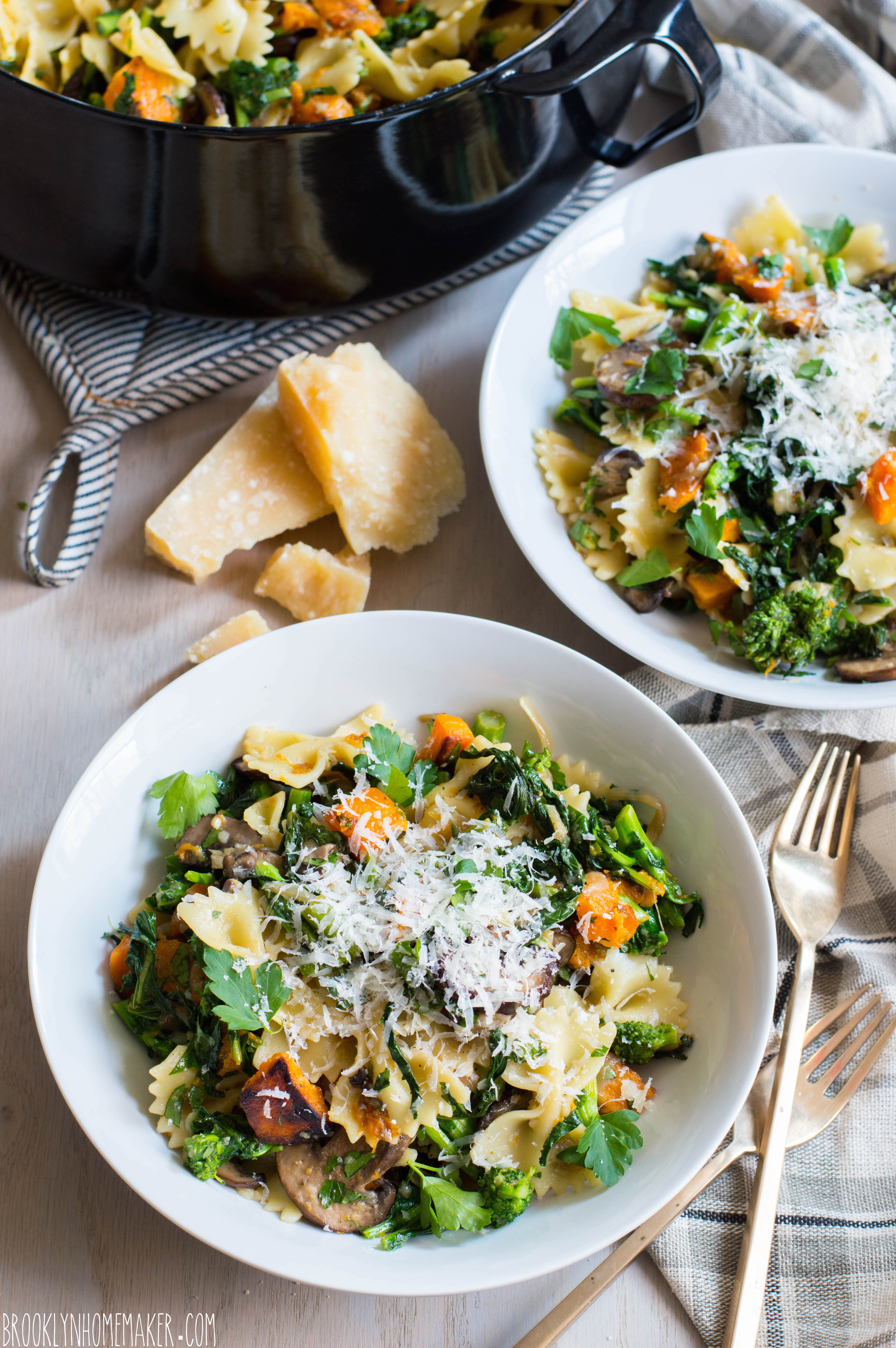 Farfalle with Broccoli Rabe, Roasted Mushrooms & Butternut Squash